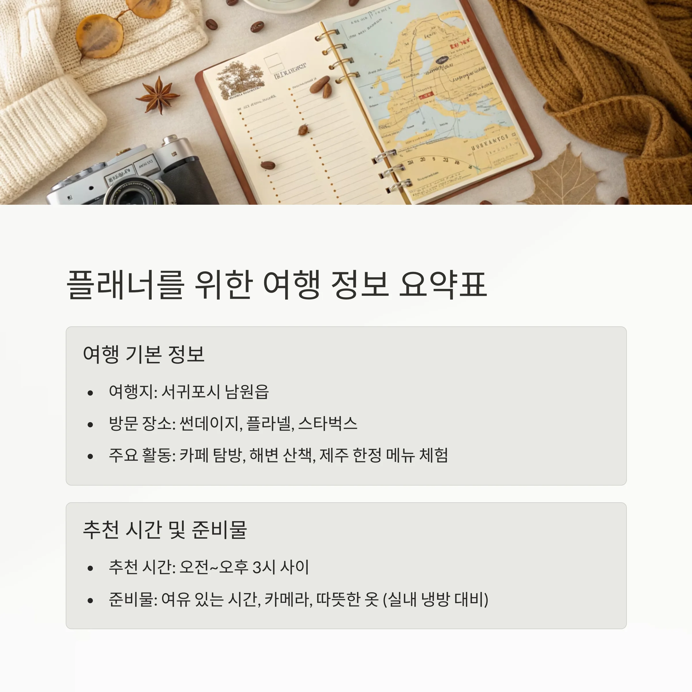 플래너를 위한 여행 정보 요약표