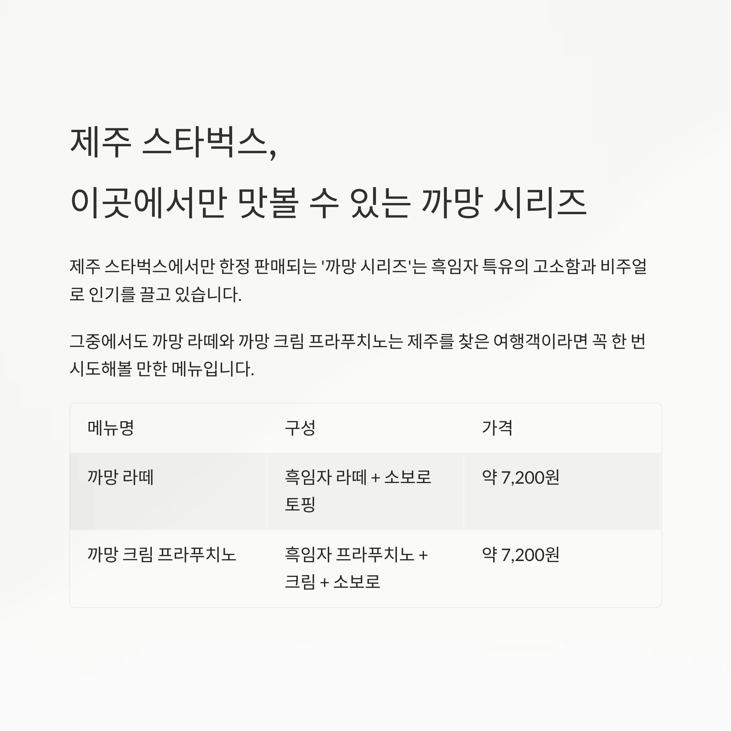 제주 스타벅스, 이곳에서만 맛볼 수 있는 까막 시리즈
