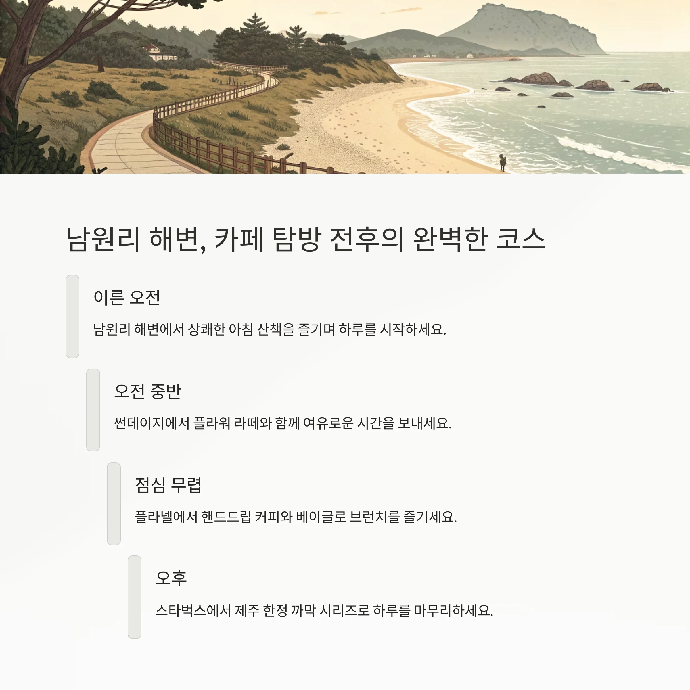 남원리 해변, 카페 탐방 전후의 완벽한 코스