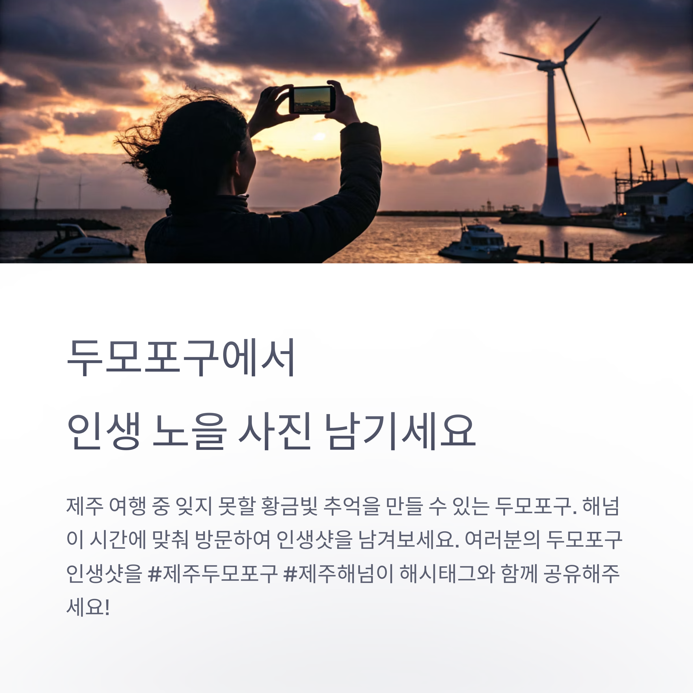 제주시 한경면에 위치한 두모포구는 최근 제주 서쪽 해넘이 명소로 주목받고 있는 포구형 관광지입니다.