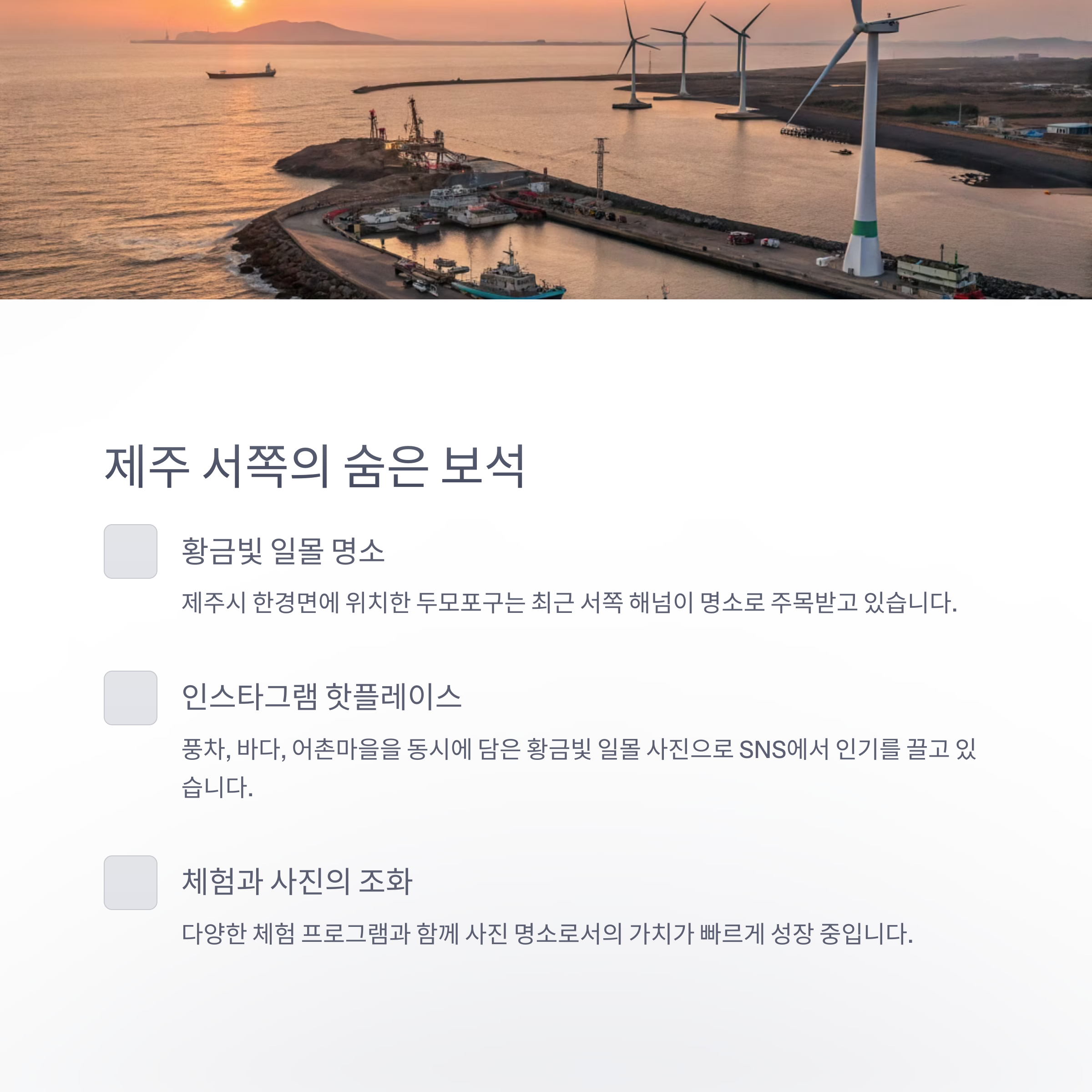 제주 서쪽 바다에서 만나는 노을, 사진 애호가가 주목하는 숨은 포인트