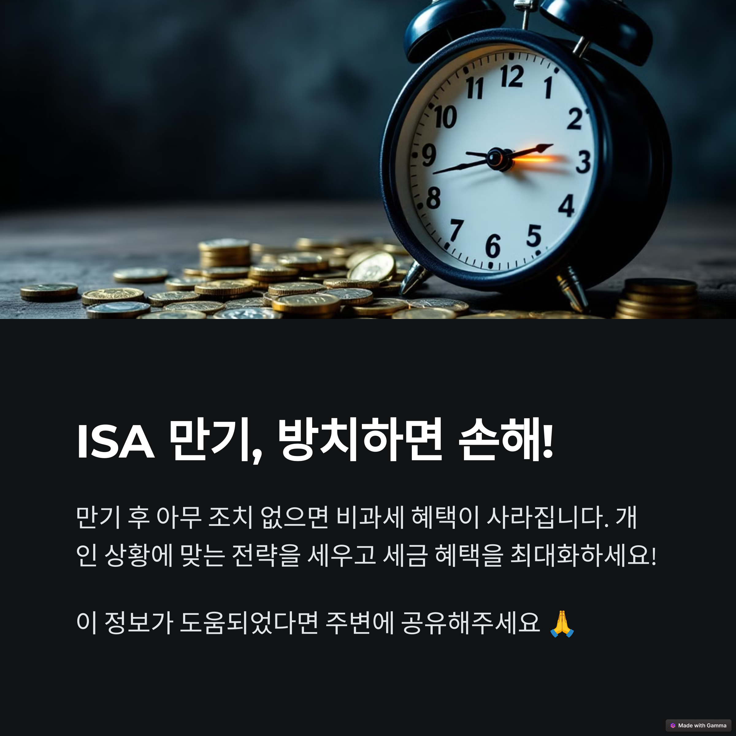세금 혜택을 극대화하고, 투자 전략을 잘 세운다면 ISA 계좌는 정말 강력한 재테크 도구가 될 수 있어요.