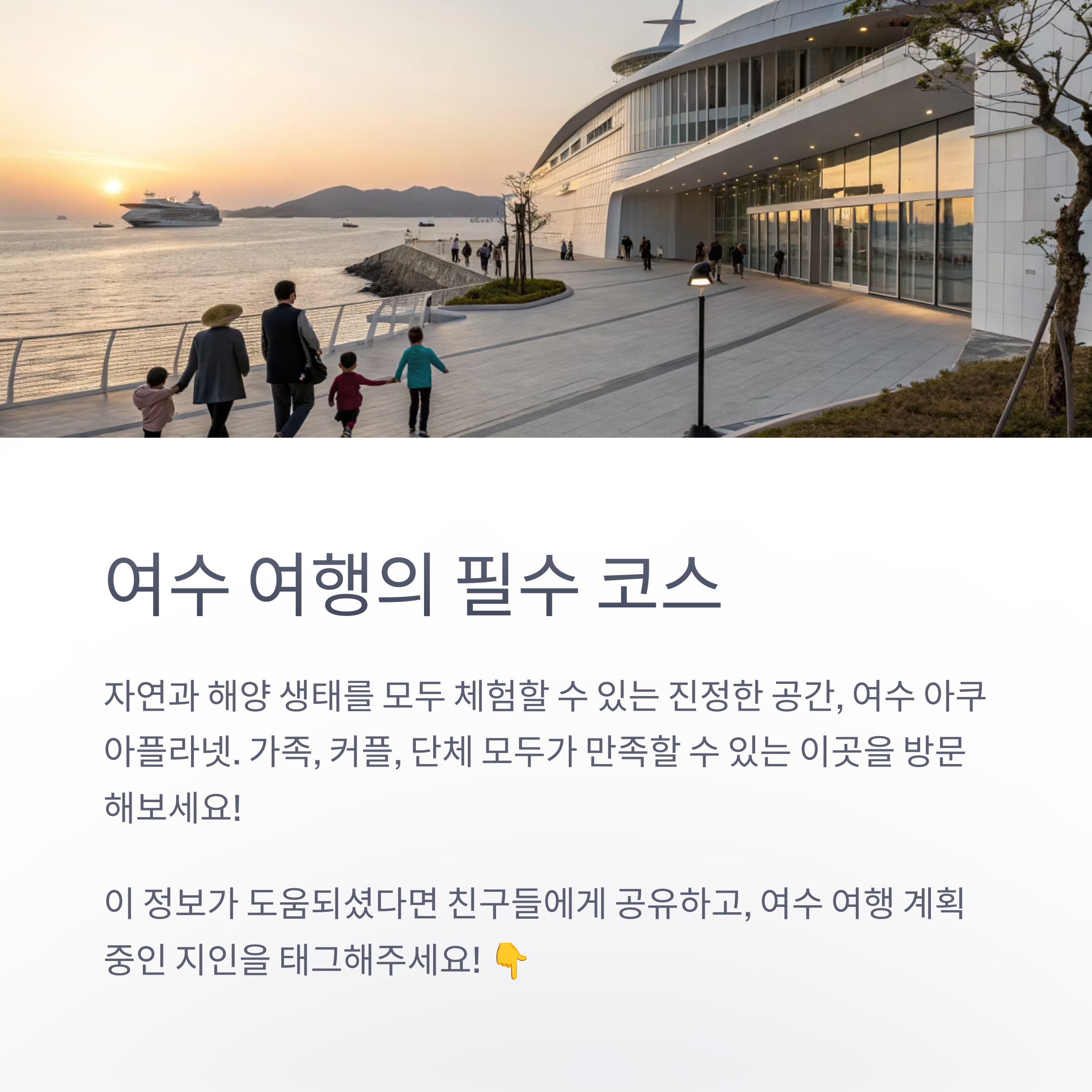 여수 아쿠아플라넷은 자연과 해양 생태를 모두 체험할 수 있는 진정한 공간입니다.