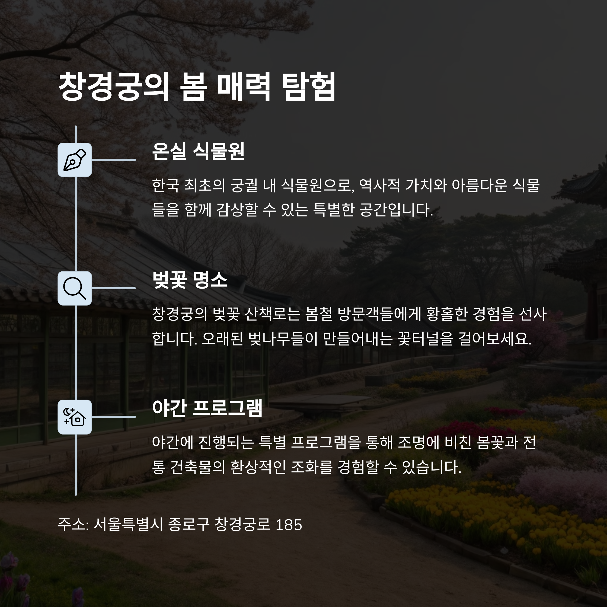 여러분만의 완벽한 봄 나들이 루트를 만들어 창덕궁과 창경궁을 최대한으로 즐겨보세요!