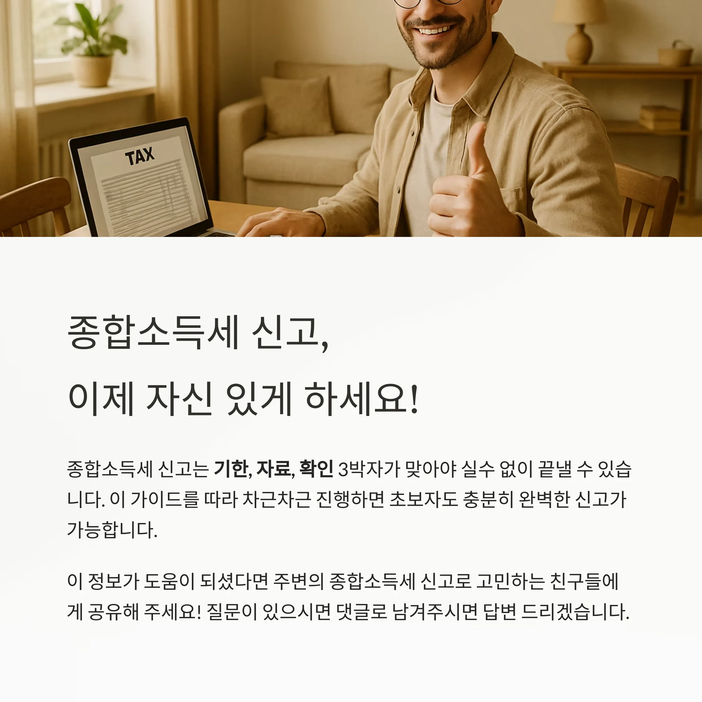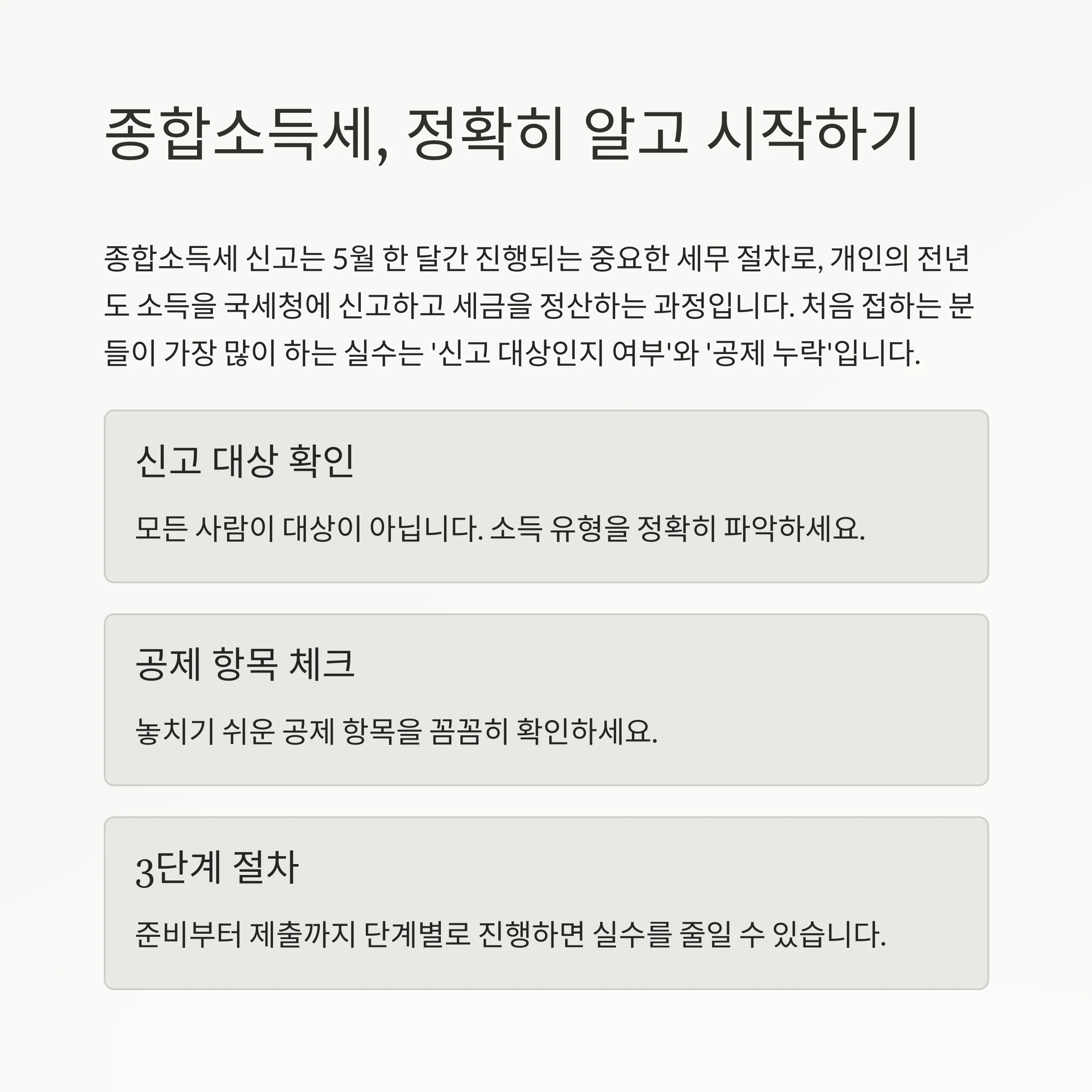"종합소득세 신고는 기한, 자료, 확인 3박자가 맞아야 실수 없이 끝낼 수 있습니다."