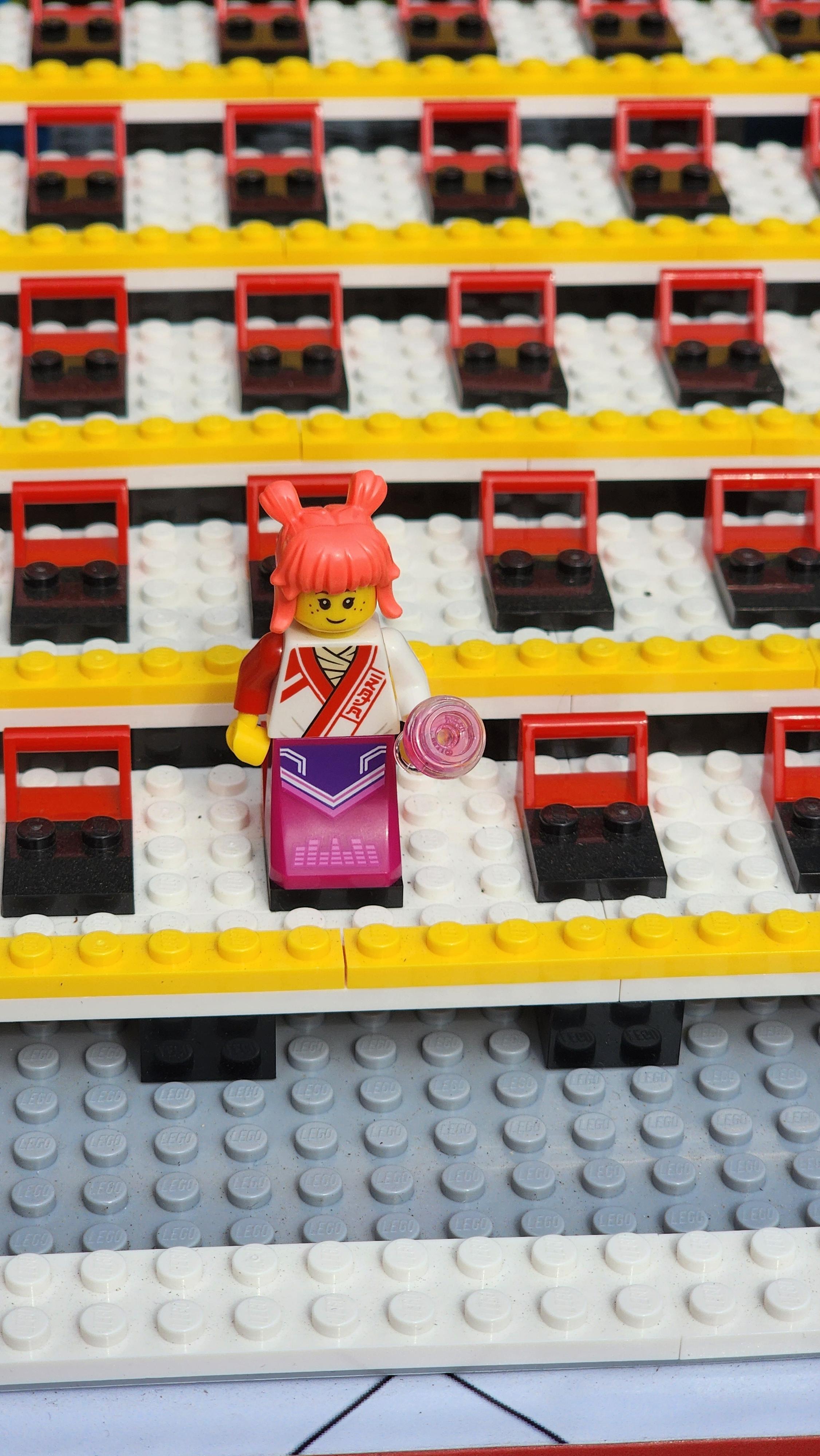준비된 레고 피규어 부품들을 조합하여 나만의 피규어를 만들고 관람석 모양으로 꾸며진 디오라마에