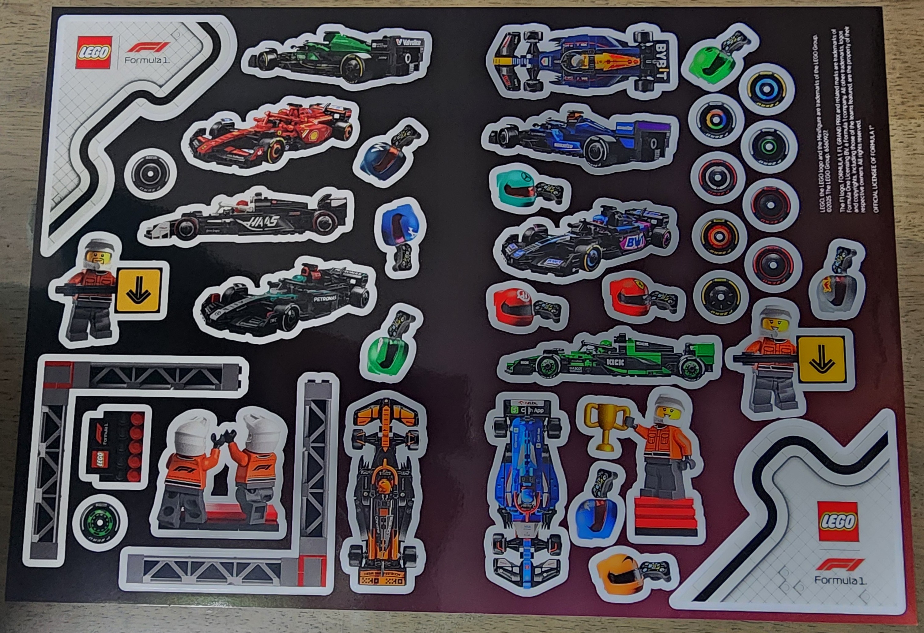 약 A3 용지 (A4 용지의 두배) 크기 정도로 제작이 되어서 모든팀의 F1 머신과 부품이 잘 표현되어 있습니다,