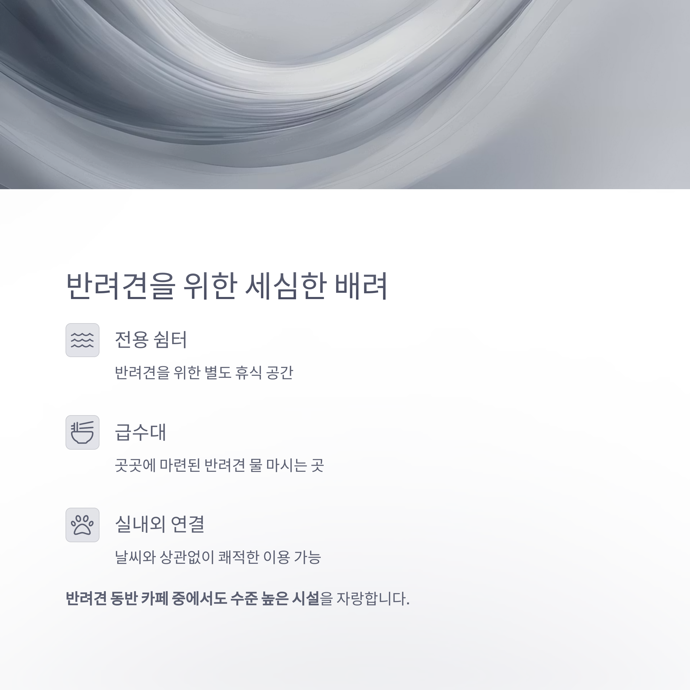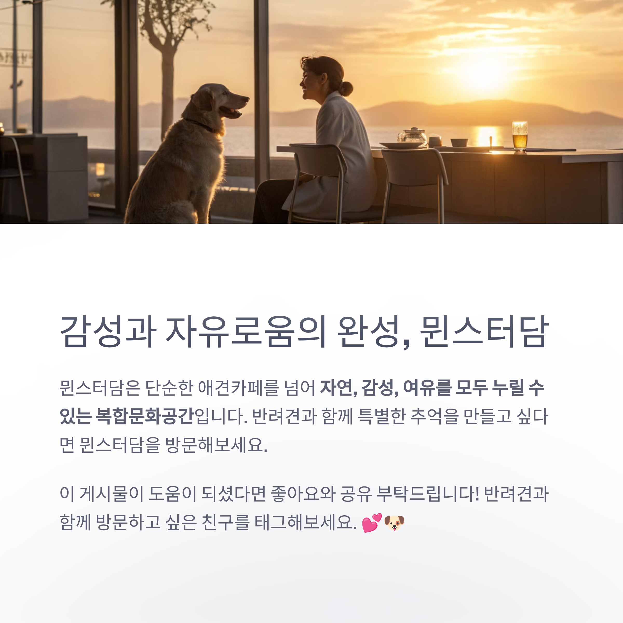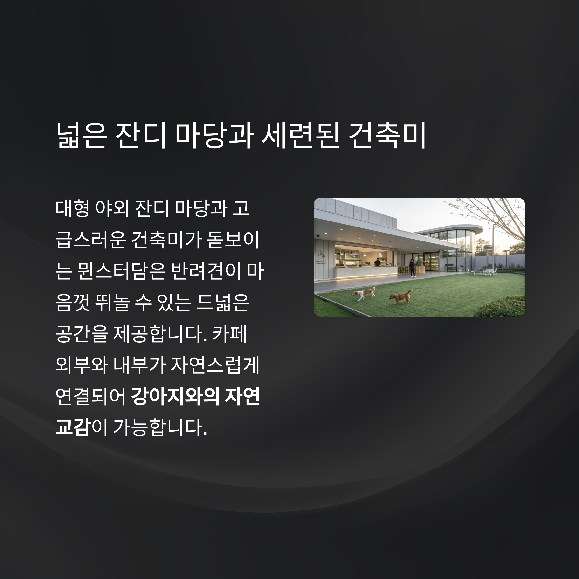 뮌스터담은 단순한 애견카페를 넘어 자연, 감성, 여유를 모두 누릴 수 있는 복합문화공간입니다.