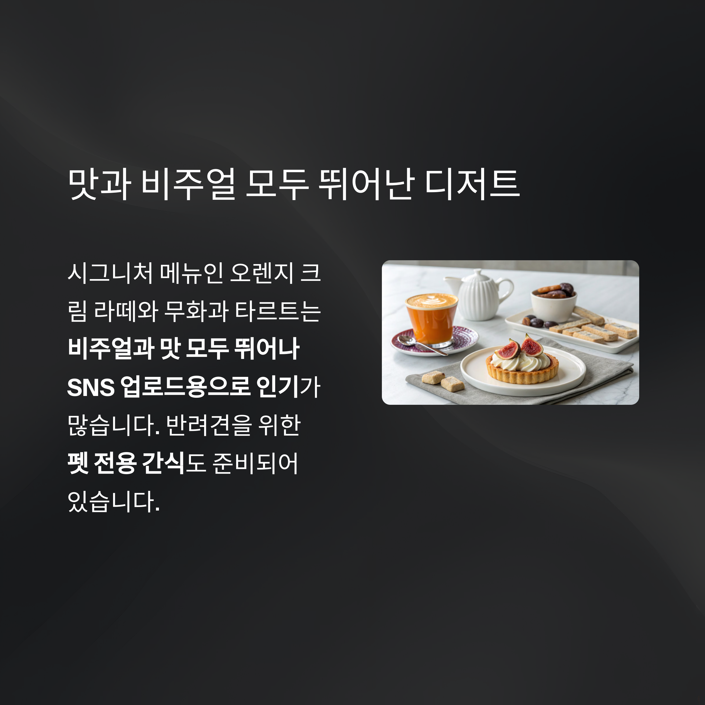 비주얼과 맛 모두 뛰어나 SNS 업로드용으로 인기가 많습니다.