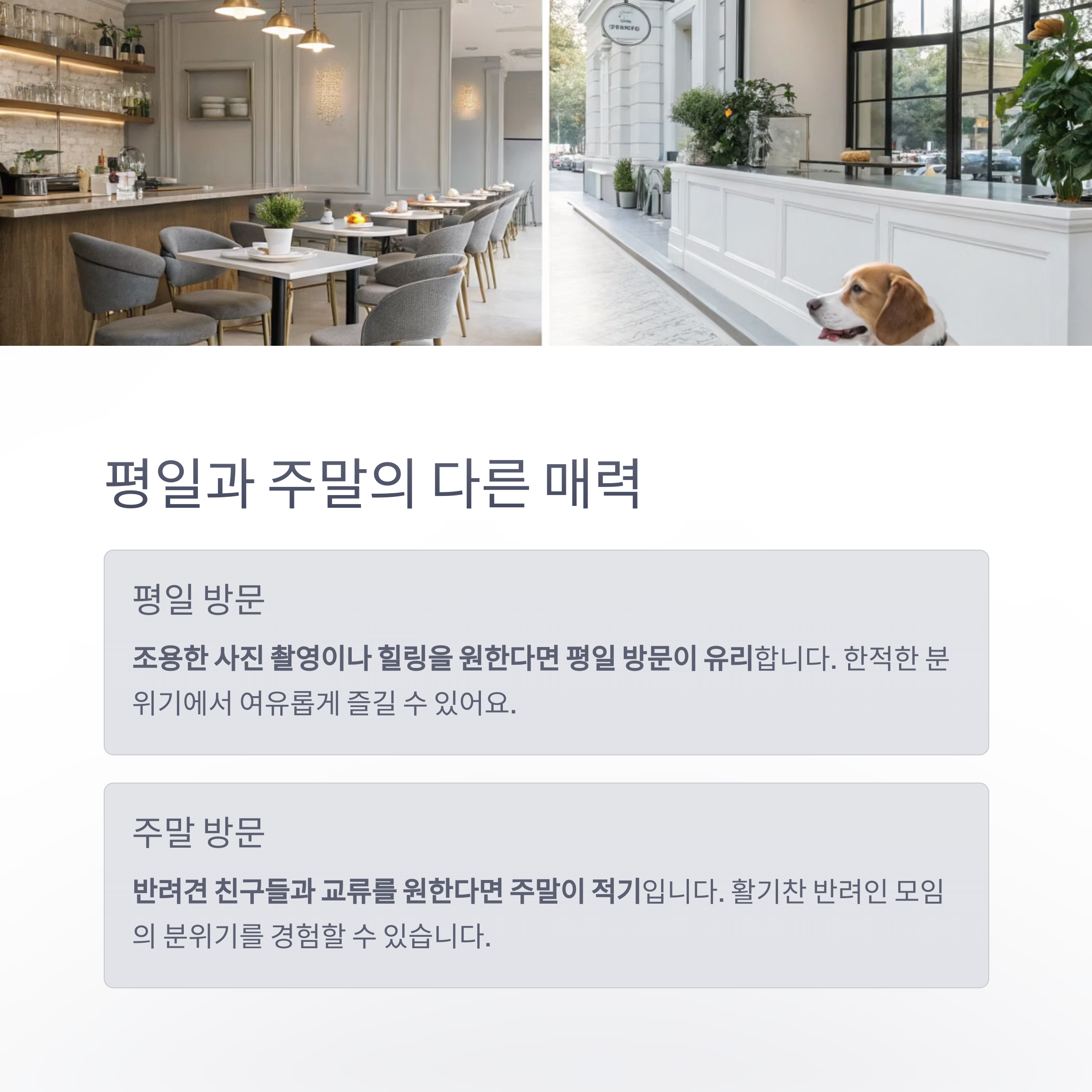 평일에는 조용한 감성이, 주말에는 활기찬 반려인 모임의 분위기가