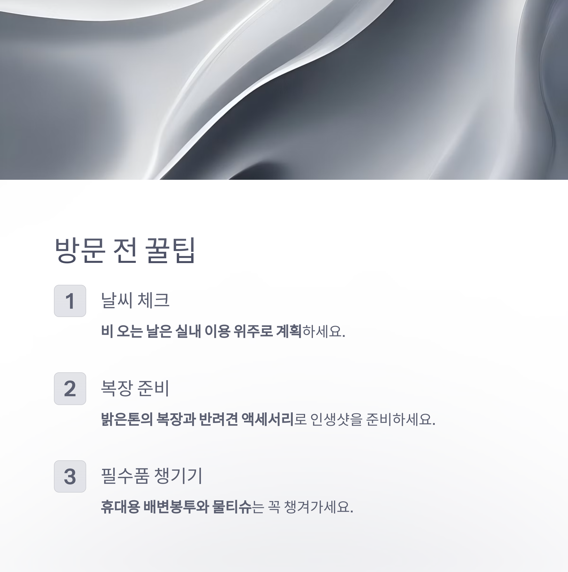 방문 전 꿀팁: 날씨와 복장 체크는 필수
