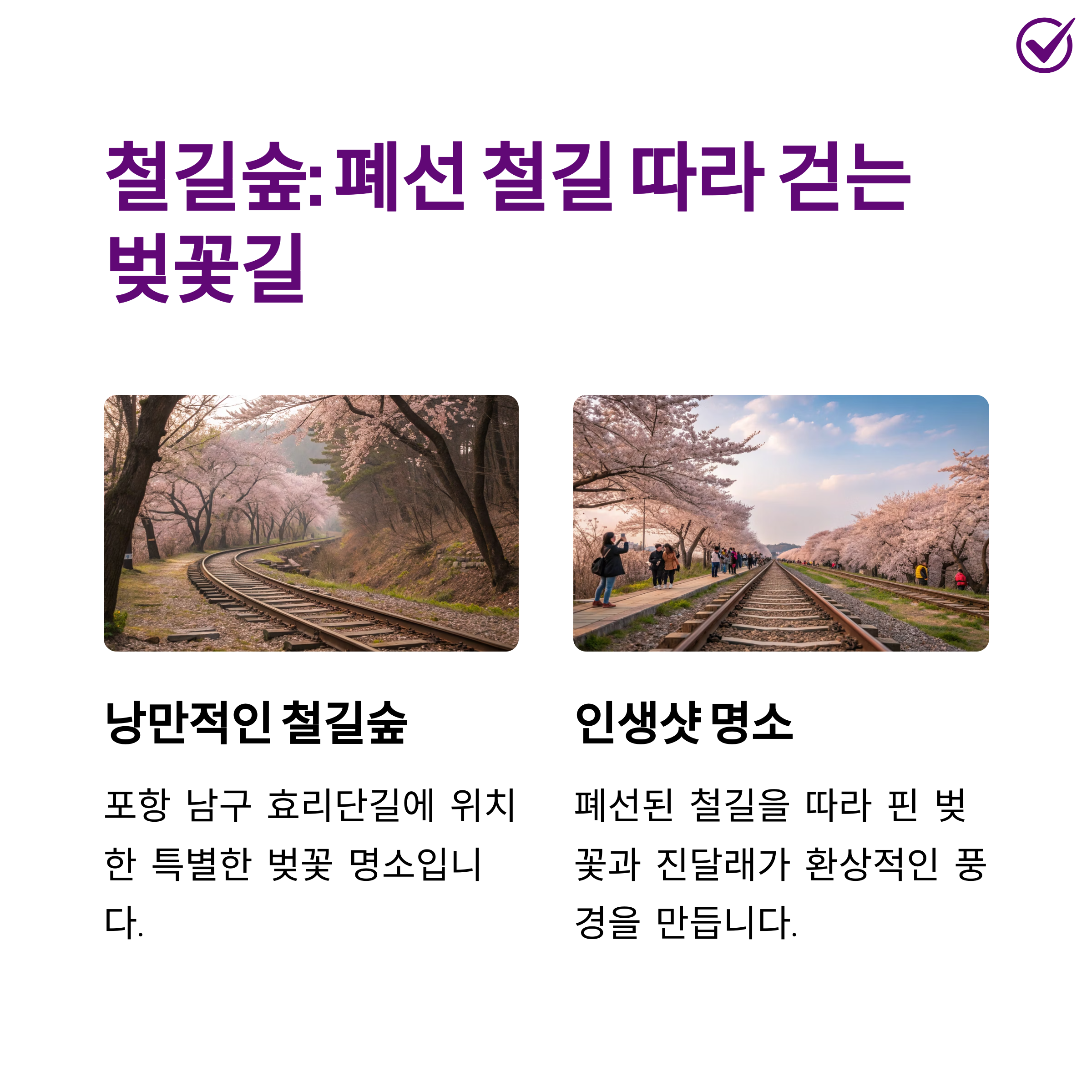 철길숲과 영일대 호수공원에서 벚꽃을 즐길 수 있는 시기 및 특징을 분석합니다.