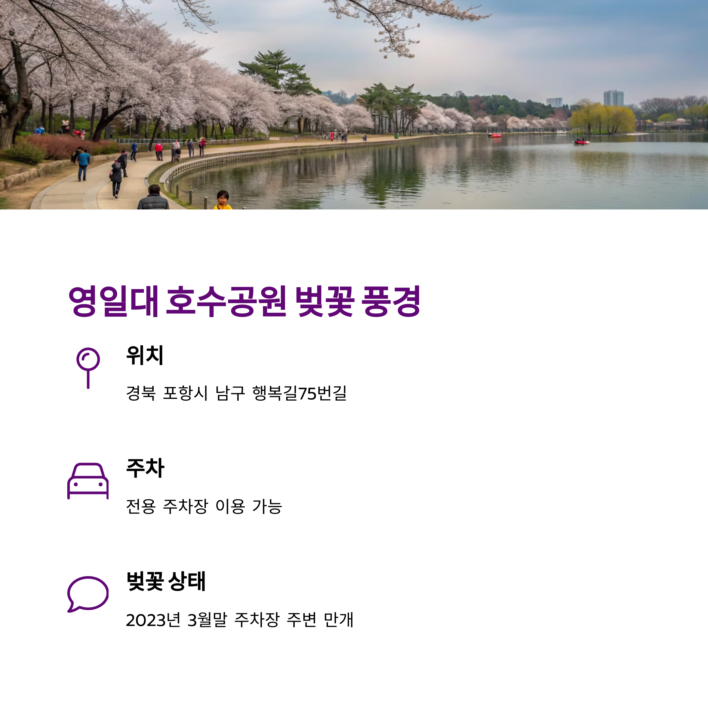 두 장소 모두 봄철 포항의 대표 명소로, 방문하기 좋은 추천지로 꼽히고 있습니다.