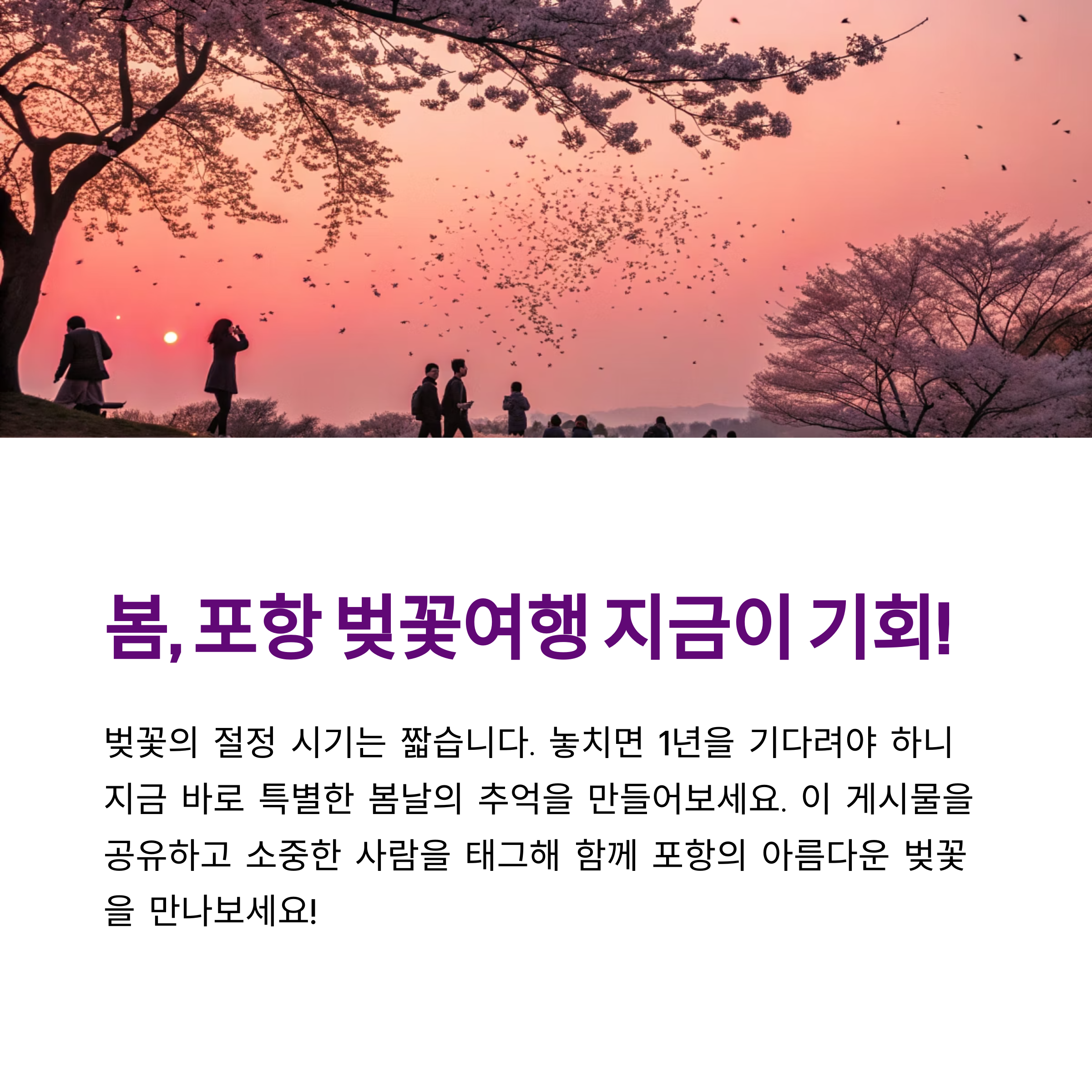벚꽃 시즌 동안 놓치지 말아야 할 포항의 명소들을 탐방하고, 완벽한 봄나들이를 계획해보세요.