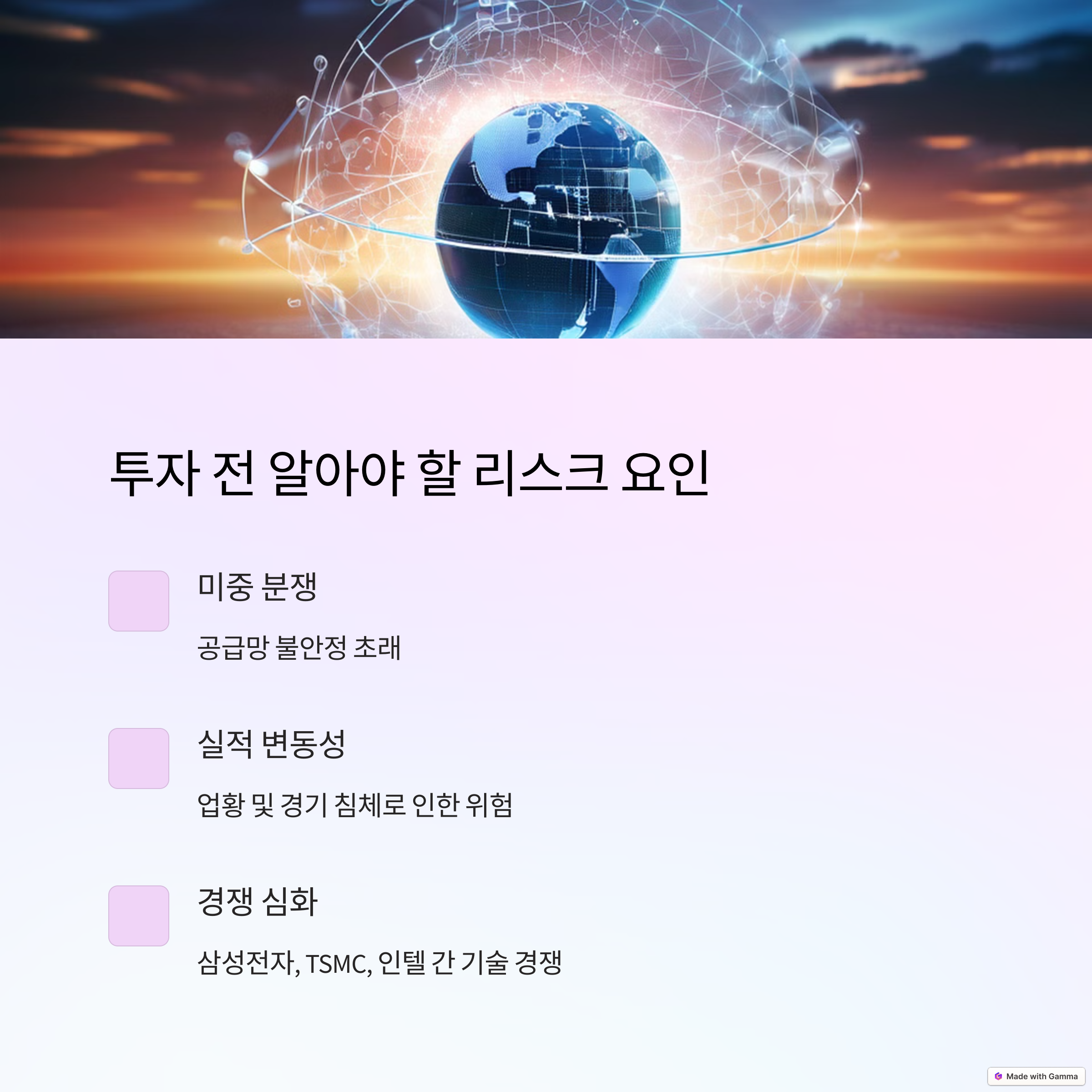 반도체 산업은 높은 성장 가능성을 지닌 반면, 다양한 리스크 요인도 존재합니다. 특히, 공급망 이슈, 기술 경쟁, 수요 변동성 등이 주요 리스크로 꼽힙니다.