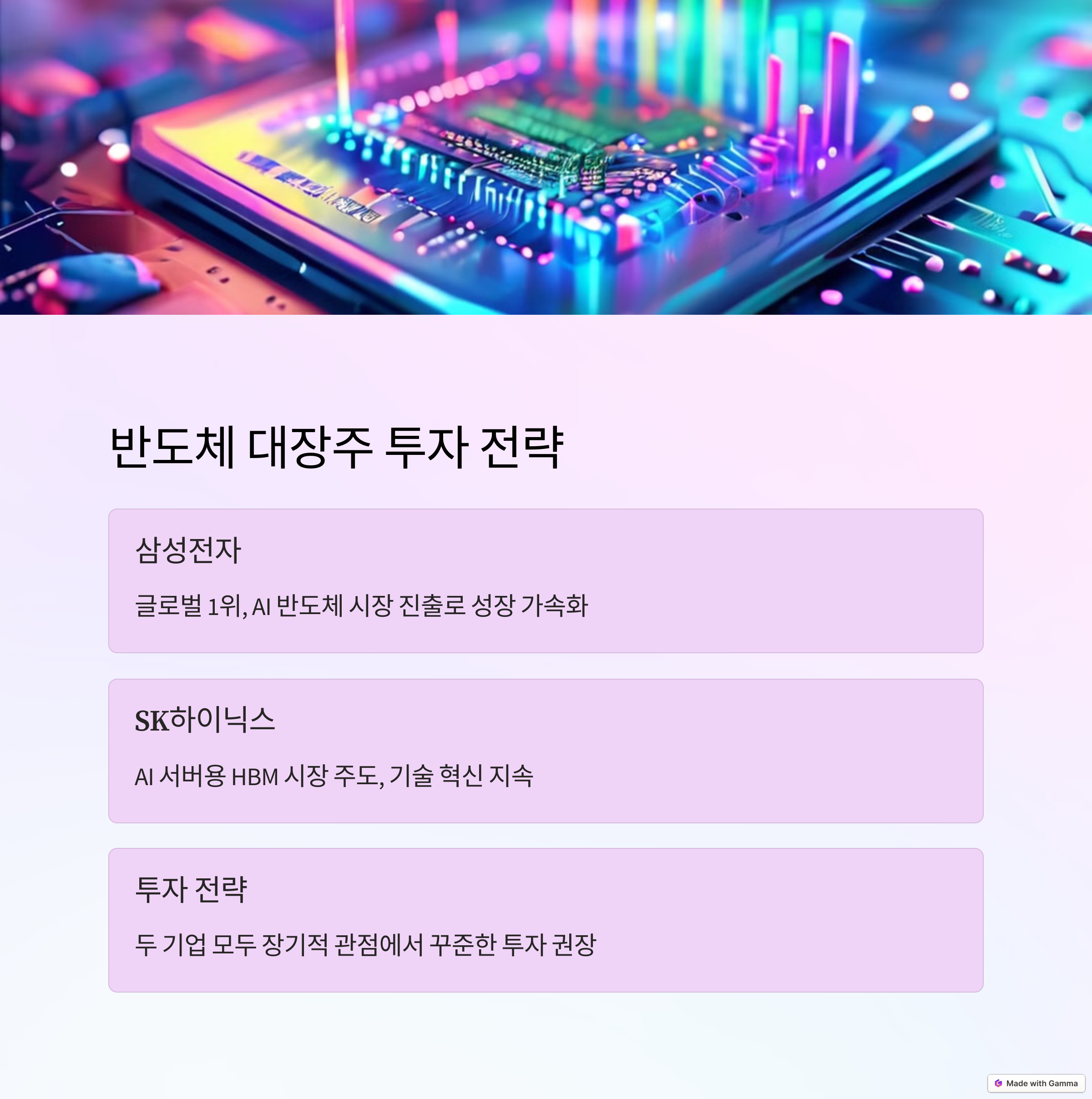 | 삼성전자 | 메모리 반도체, 파운드리 | 글로벌 1위 메모리 반도체 기업, AI 반도체 시장 진출 |