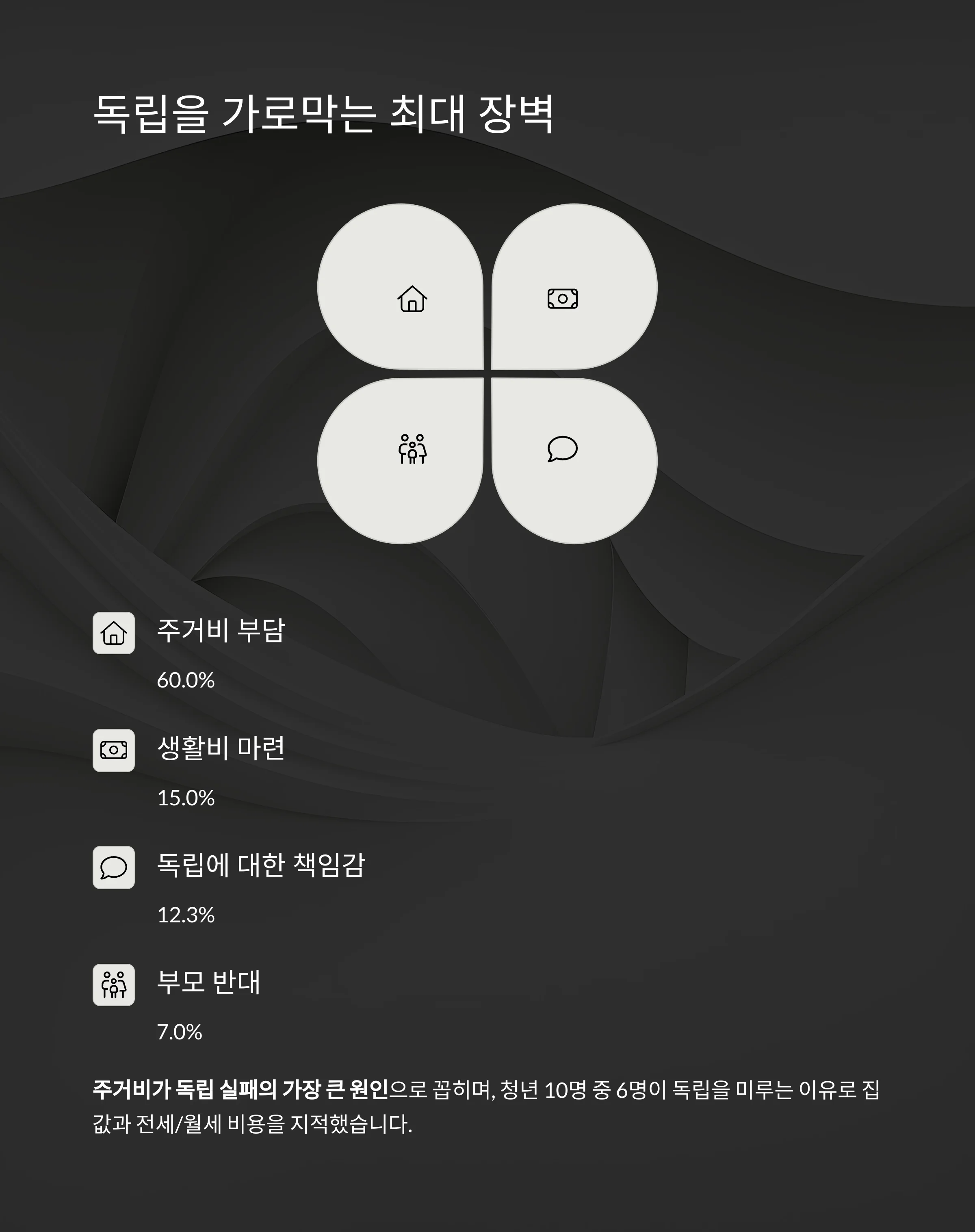 독립을 가로막는 가장 큰 장벽: 주거비와 생활비