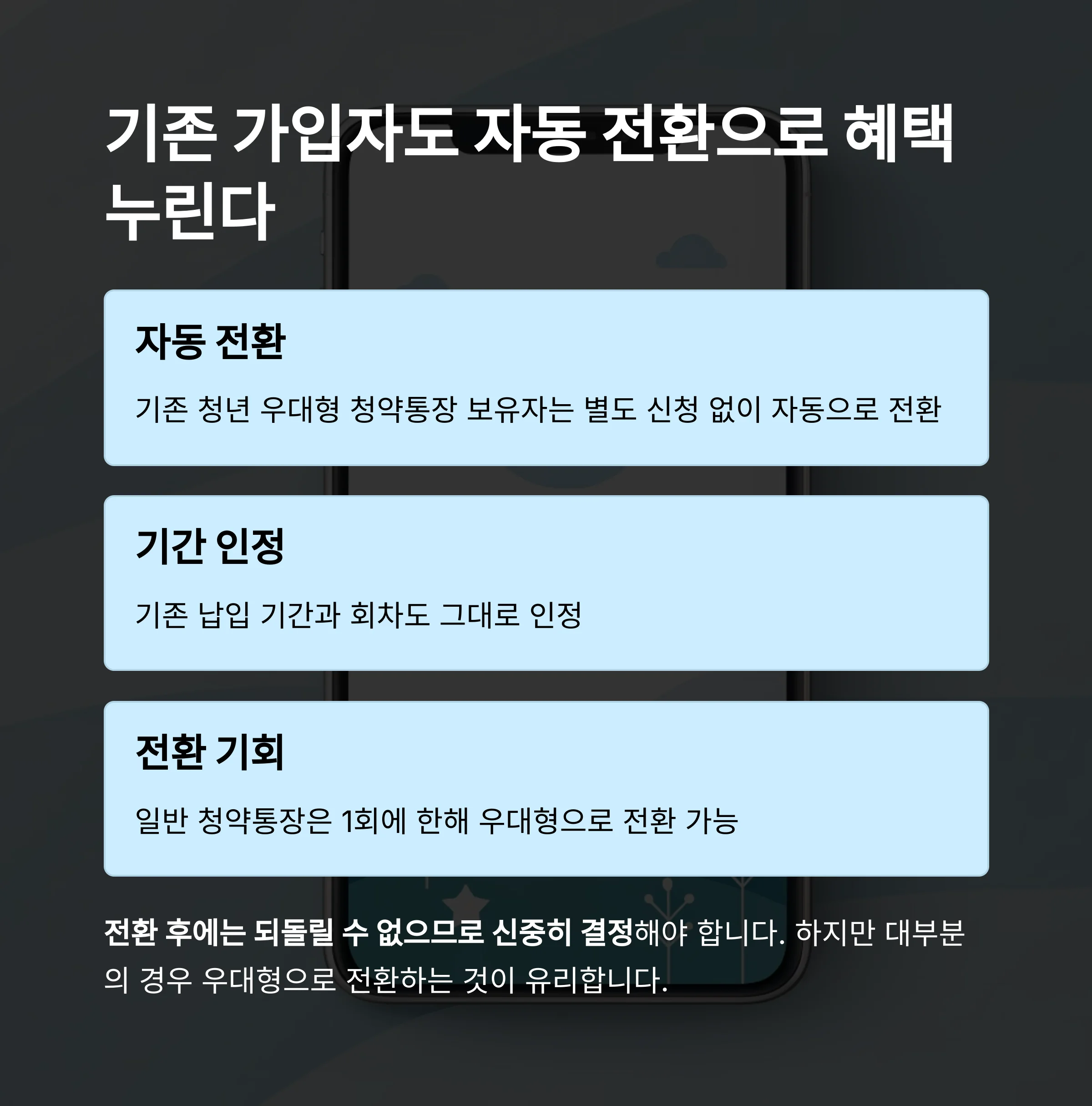 1회에 한해 기존 일반 청약통장을 우대형으로 전환할 수 있으며