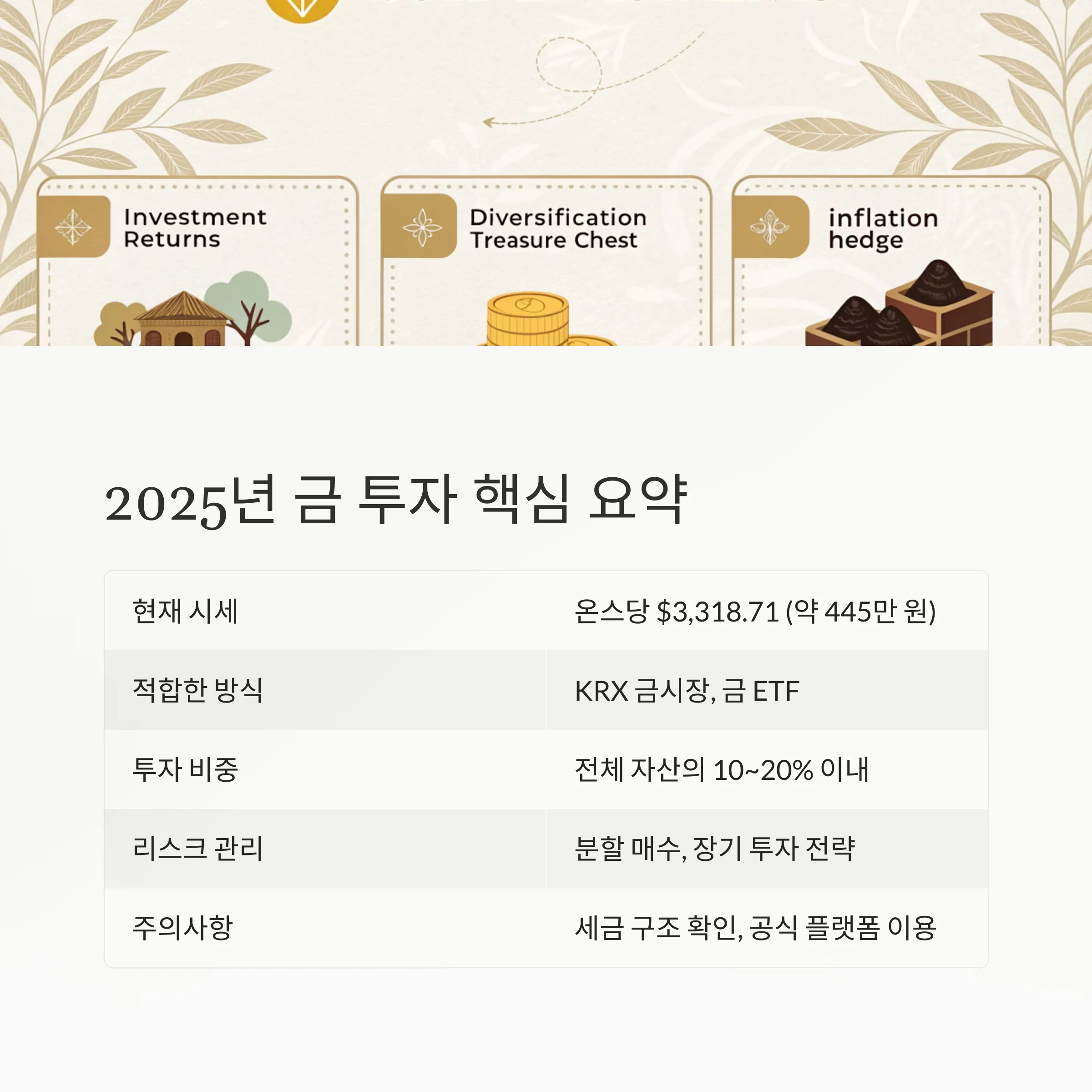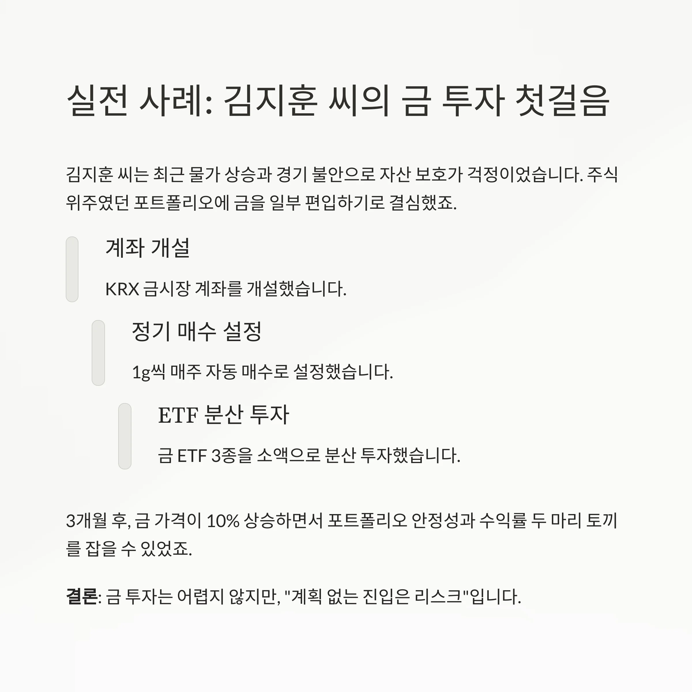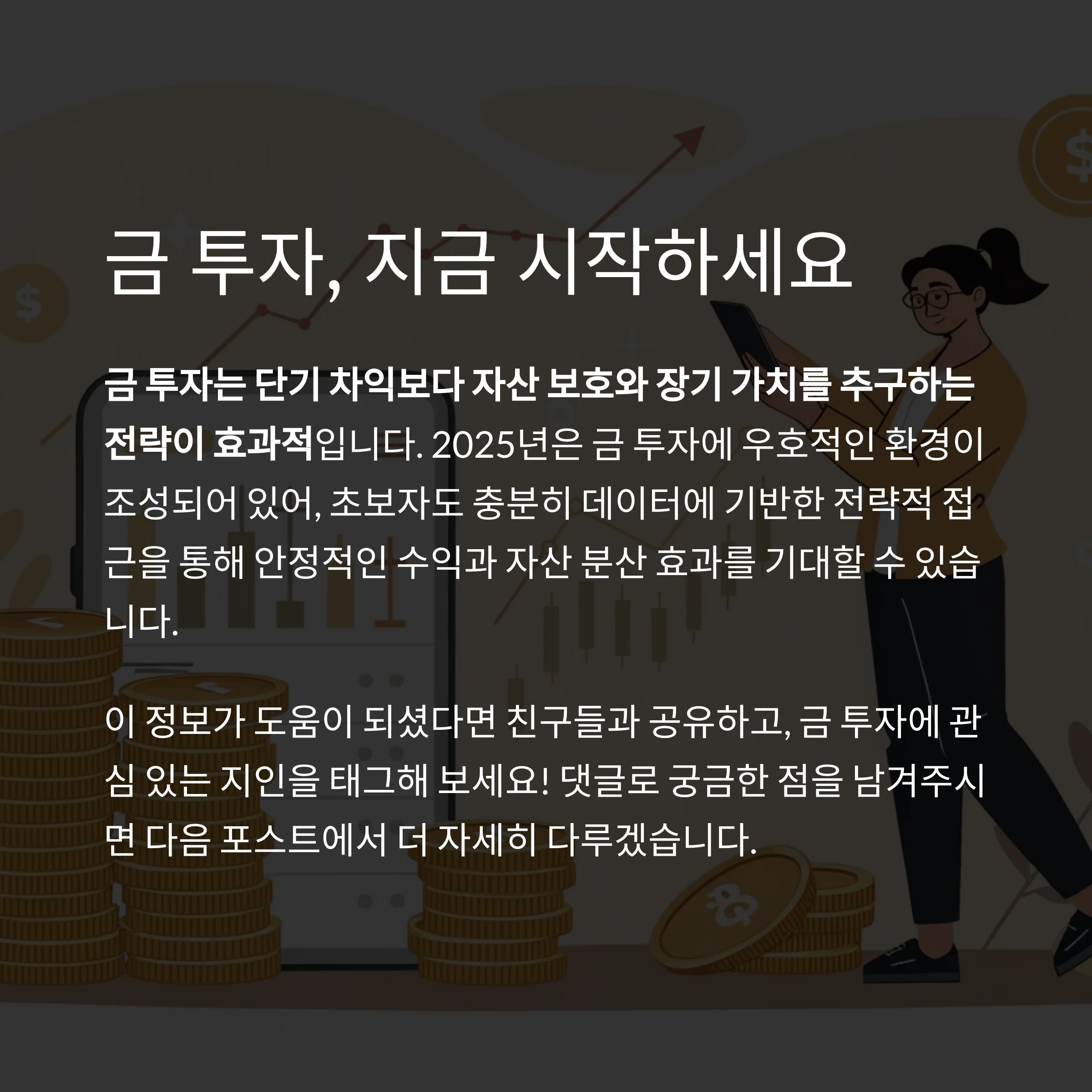결론: 금 투자는 어렵지 않지만, "계획 없는 진입은 리스크"입니다.