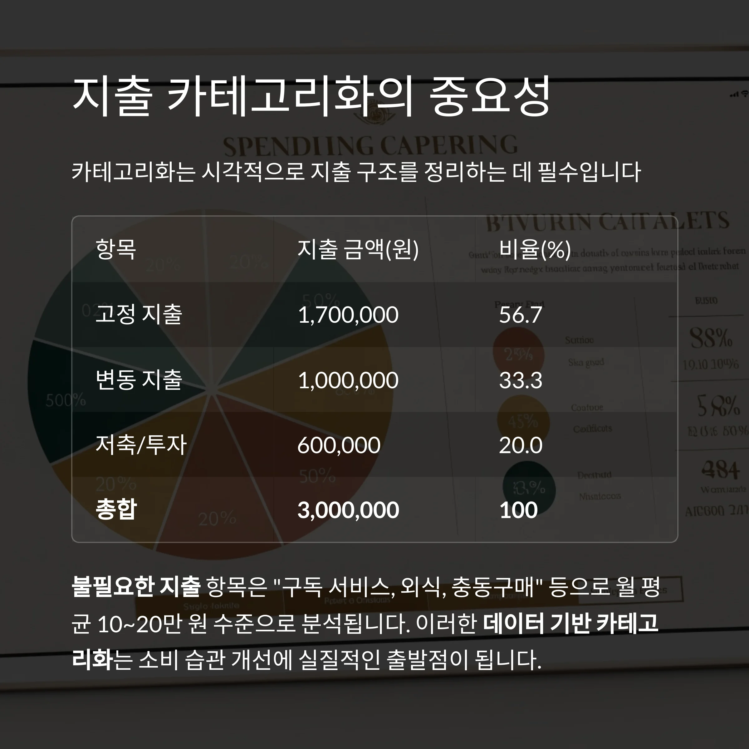 카테고리화는 시각적으로 지출 구조를 정리하는 데 필수입니다