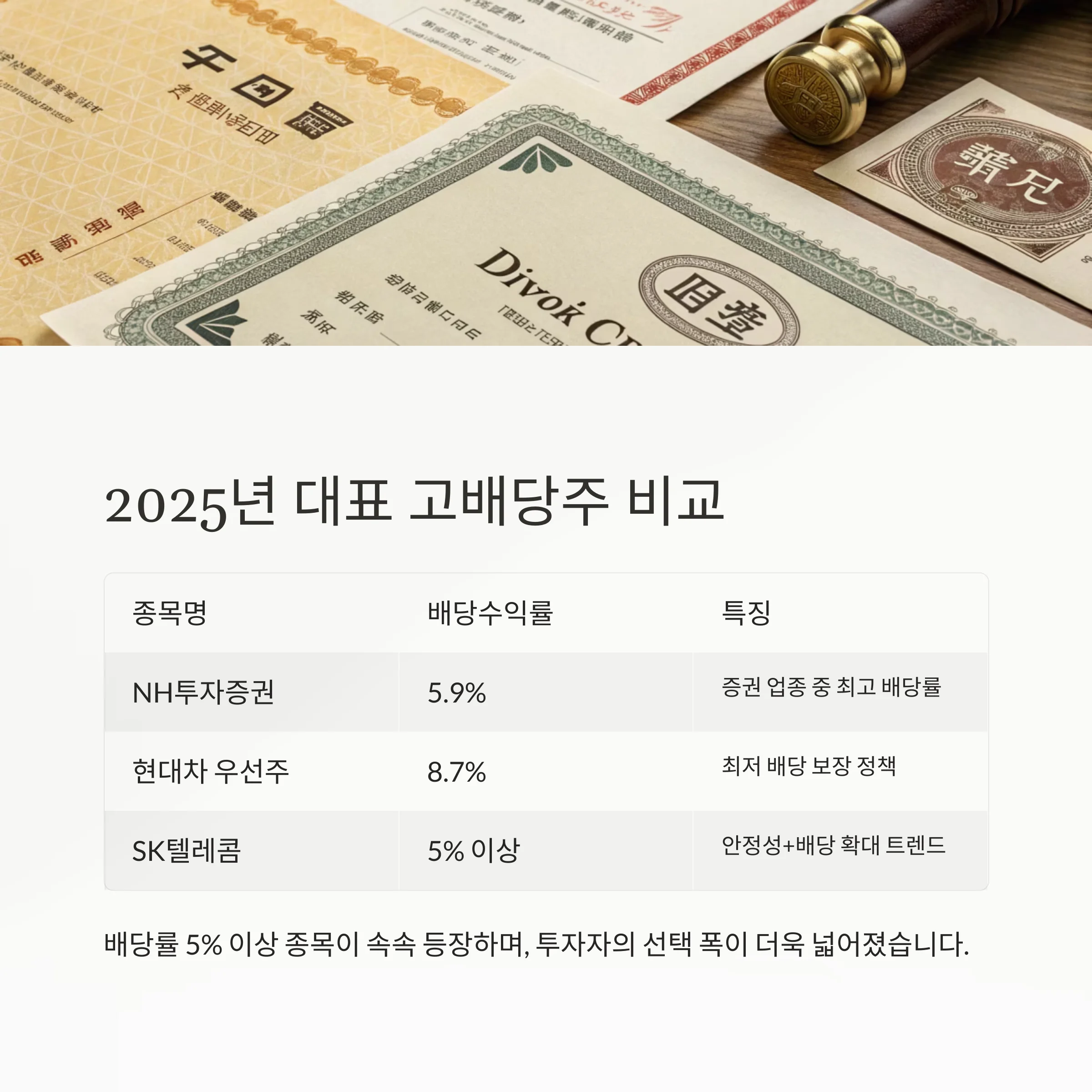 대표 고배당주별 배당수익률 비교 (2025년 기준)