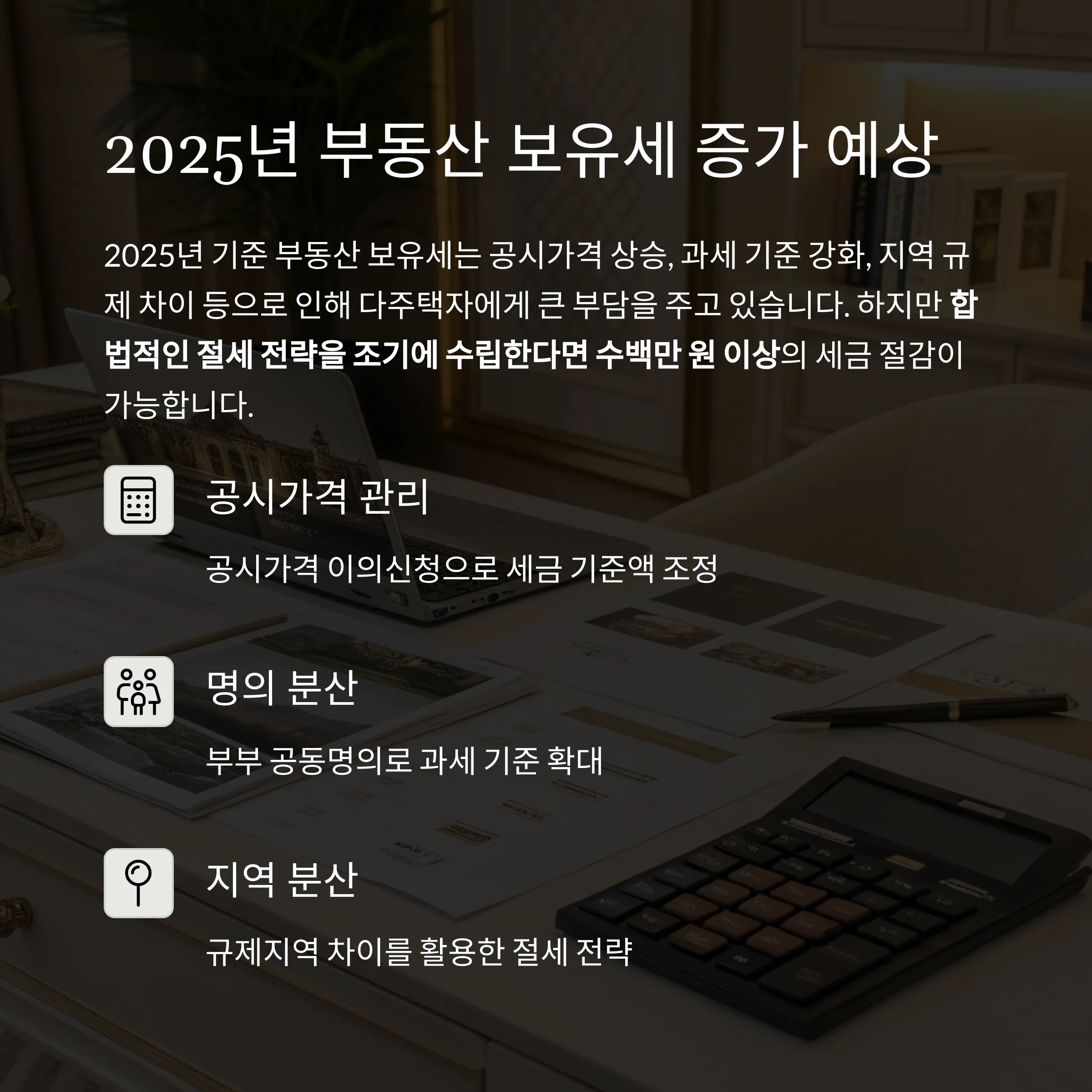 2025년 부동산 보유세 절감 전략: 공시가격 관리부터 명의 분산까지