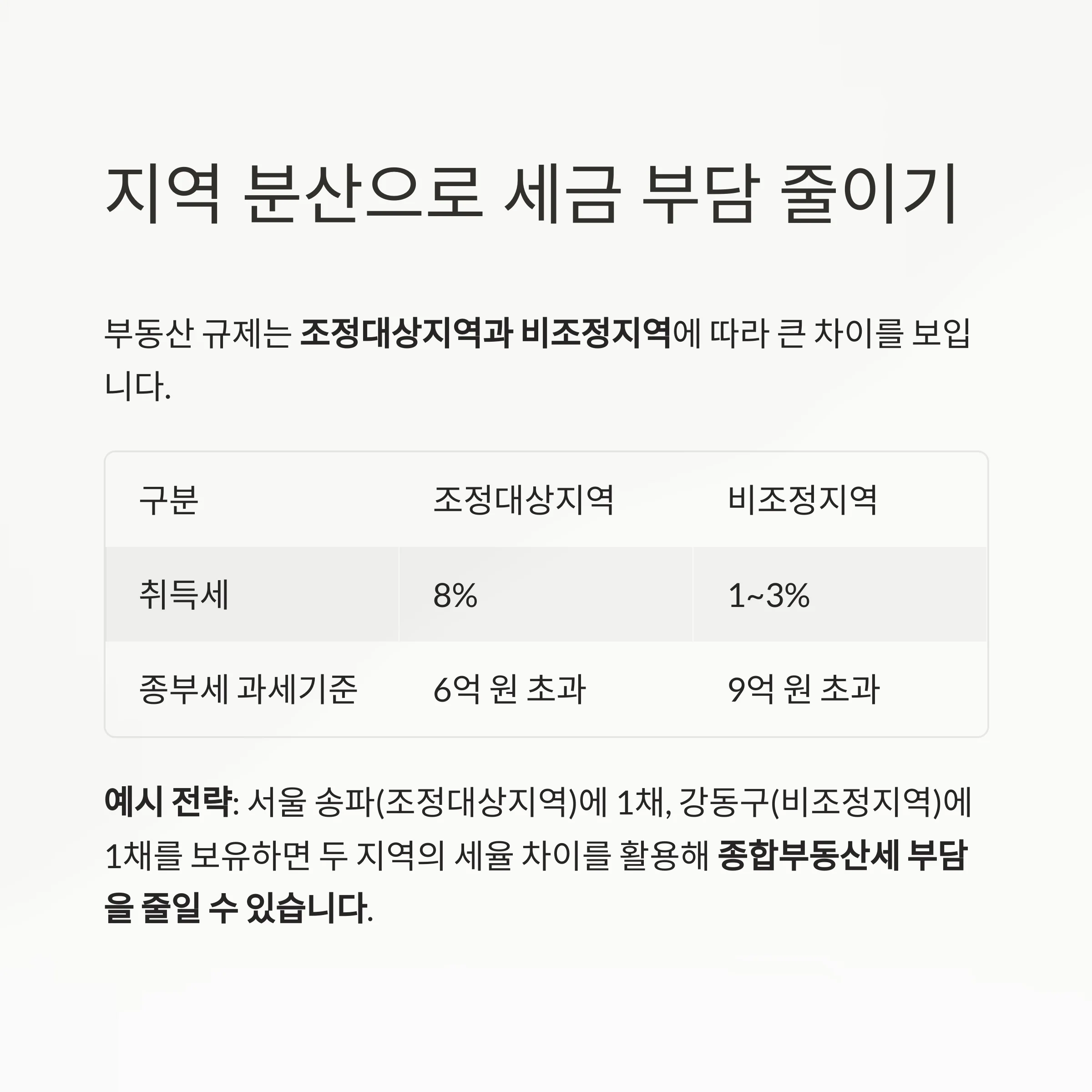 지역 규제 차이 등으로 인해 다주택자에게 큰 부담을 주고 있습니다.