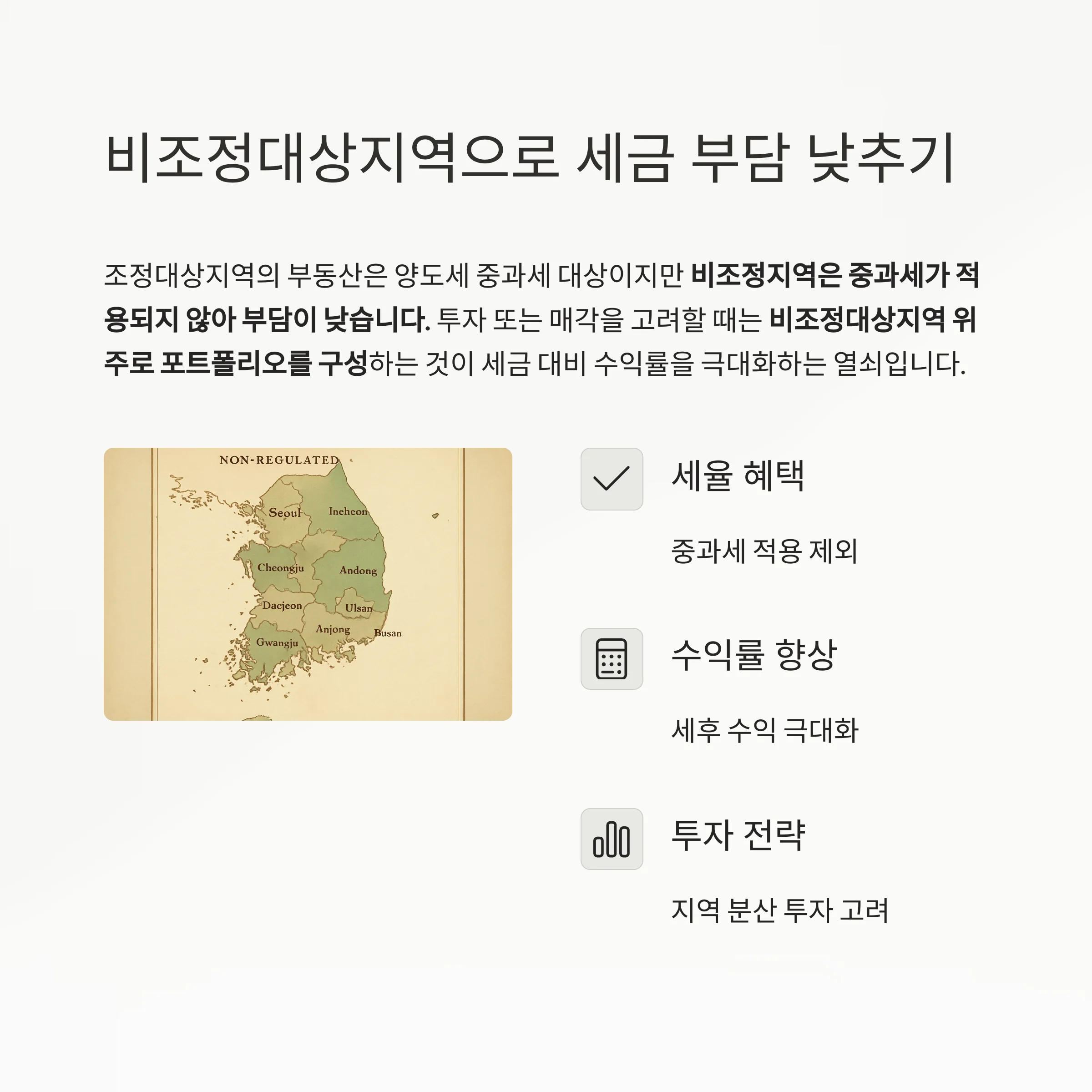 비조정지역은 중과세가 적용되지 않아 부담이 낮습니다.