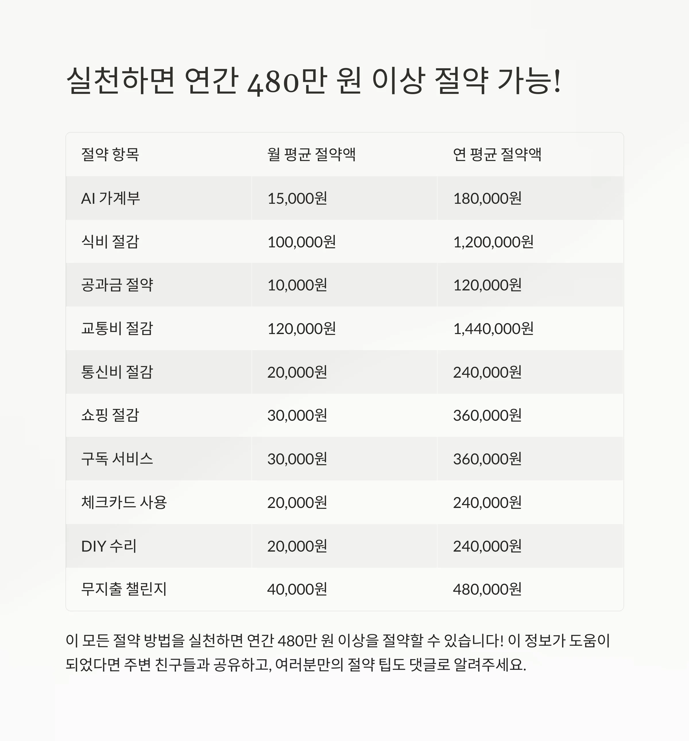 AI 가계부부터 무지출 챌린지까지 다양한 전략들을 통해 연 수백만 원을 절감할 수 있습니다.
