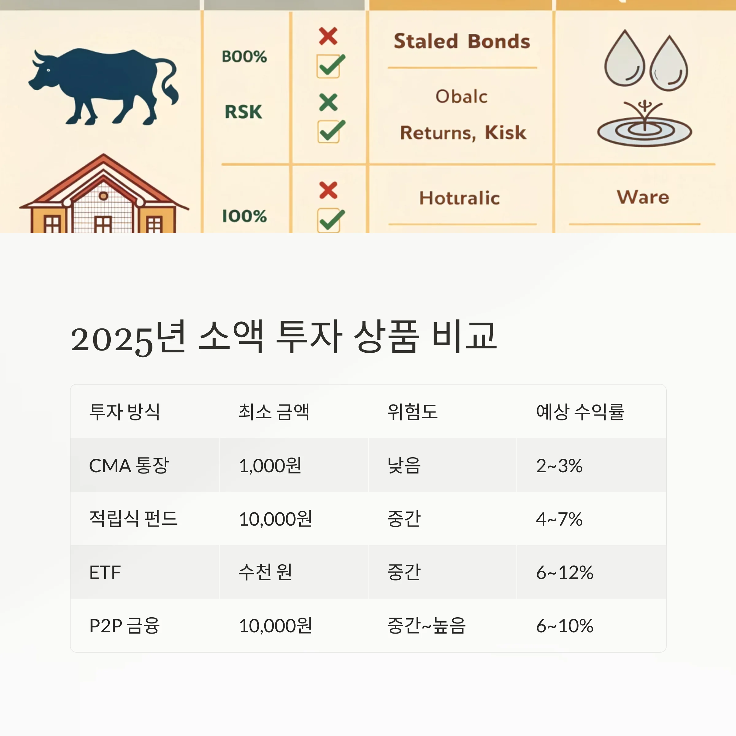 주요 소액 투자 상품 비교표 (2025년 기준)