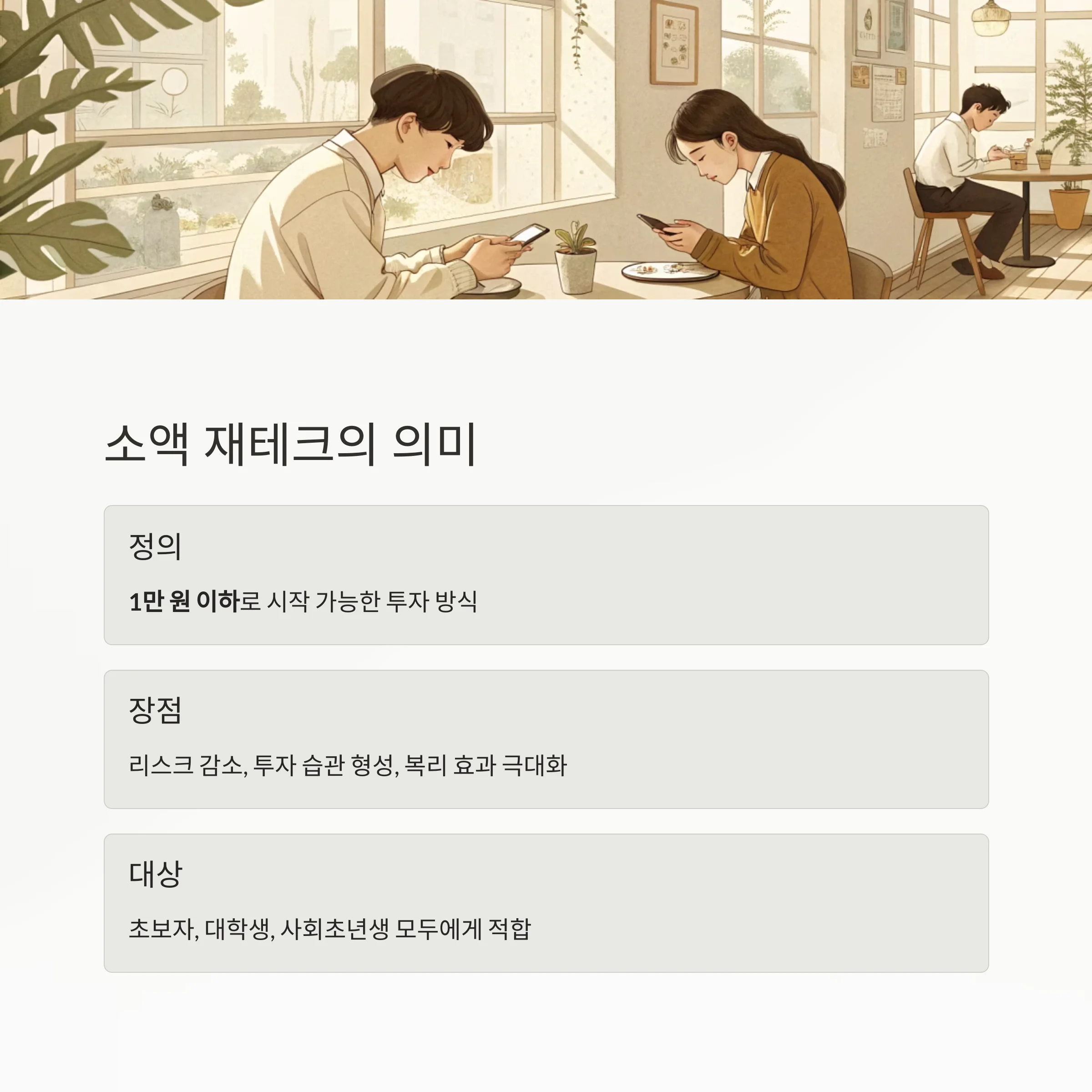 "소액 재테크"란 1만 원 이하의 금액으로도 시작 가능한 투자 방식을 의미합니다.