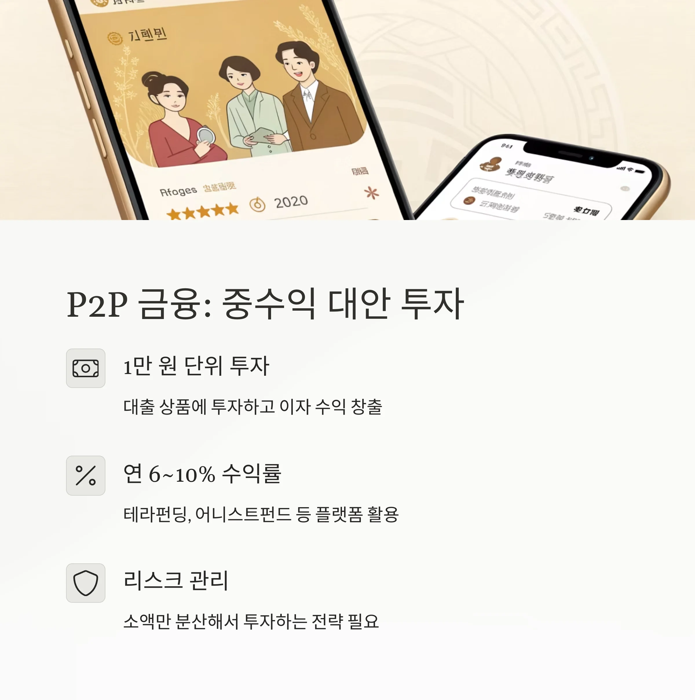 P2P 금융 10,000원 중간~높음 6~10% 플랫폼 선택 중요