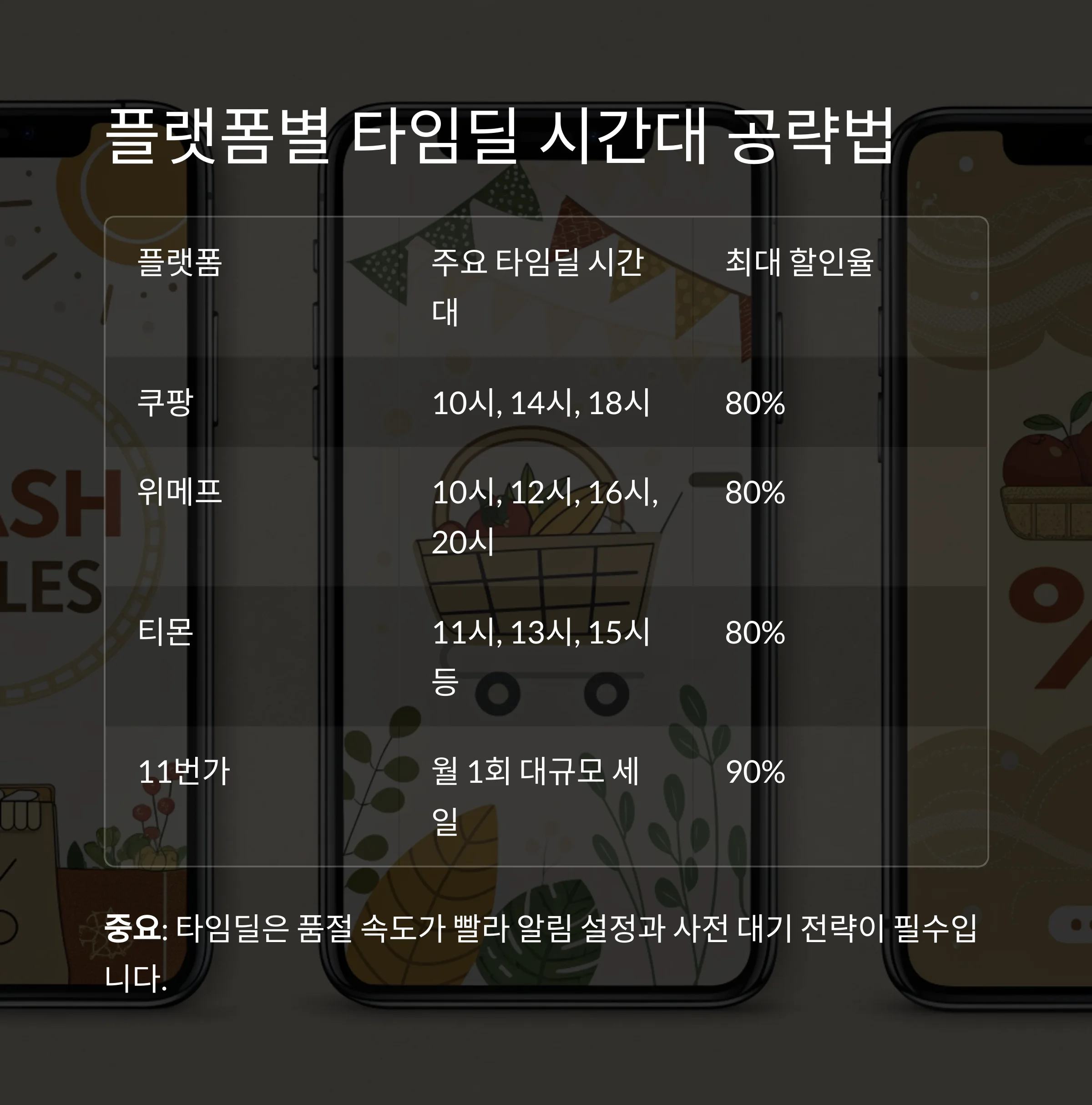 다음 표는 대표 플랫폼별 타임딜 타이밍과 특징입니다.