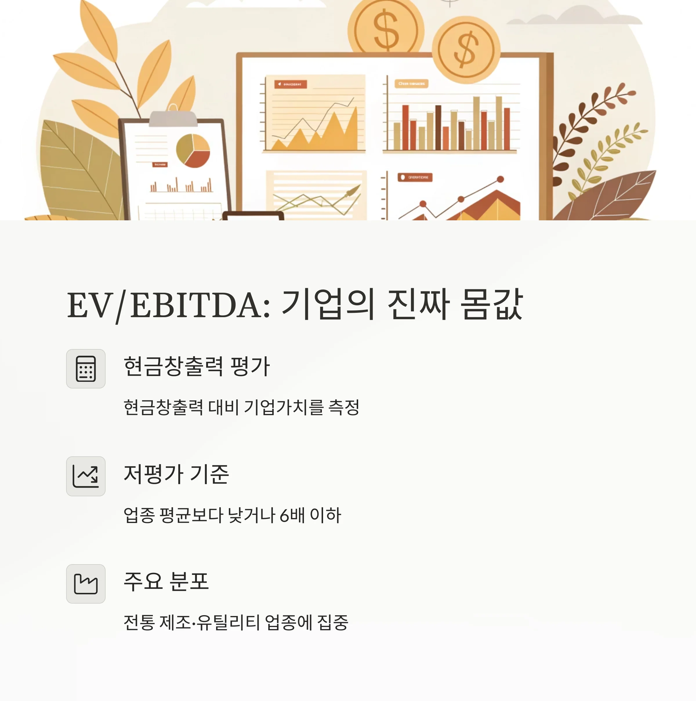 EV/EBITDA는 현금창출력 대비 기업가치를 평가할 수 있는 실전형 지표입니다.