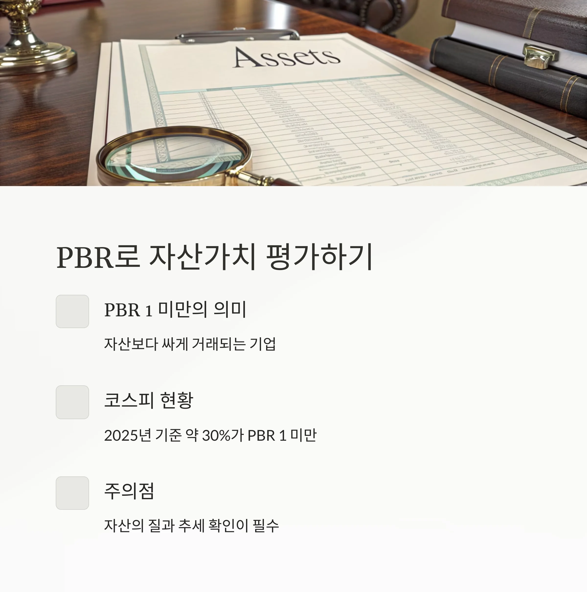 PBR은 기업의 자산가치 대비 현재 주가를 평가합니다.