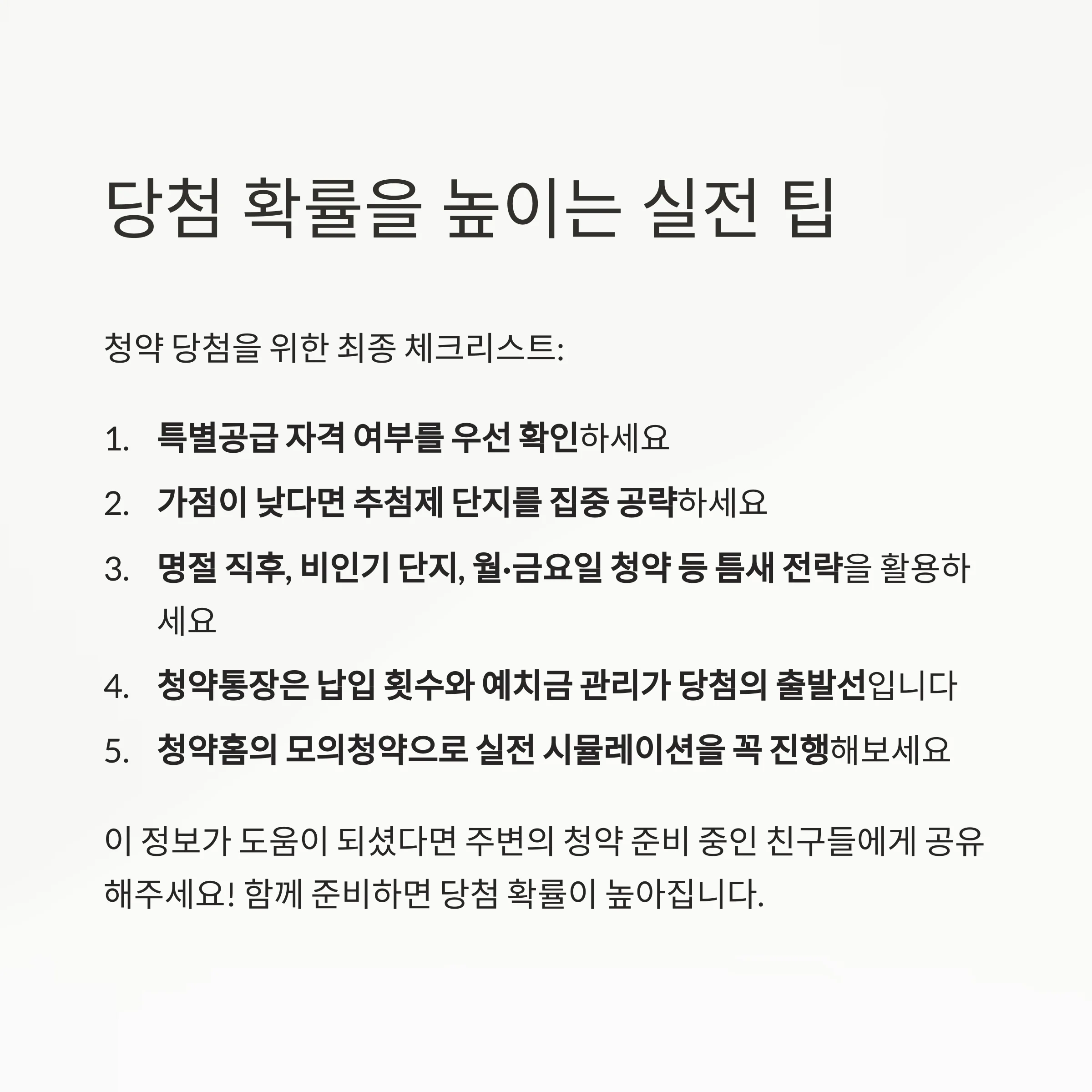 가점제 강화, 특별공급 확대, 청약통장 관리 완화 등은 모두 전략적 접근이 필요한 이유입니다.