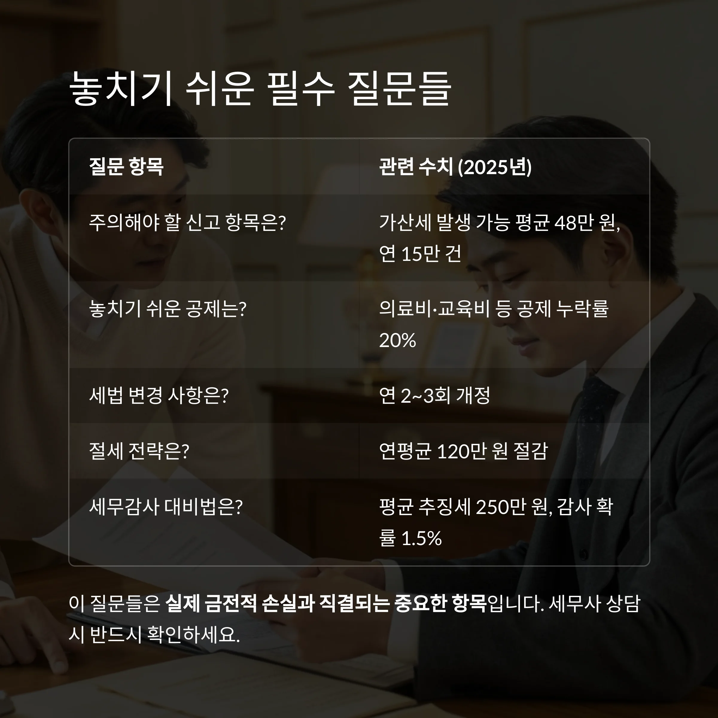 2025년 최신 세법 기준에 따라, 상담 전 반드시 확인하고 물어야 할 질문을 정리했습니다