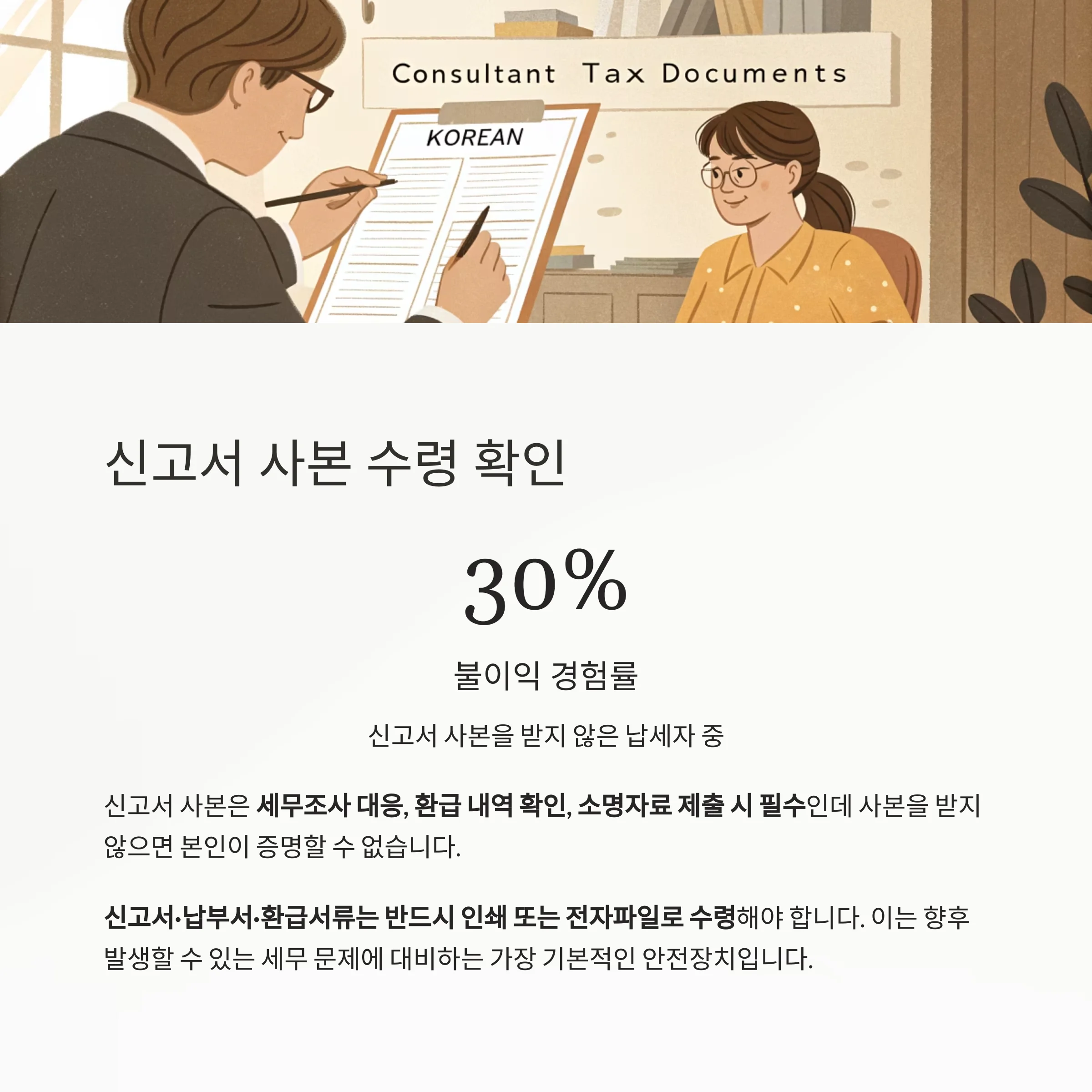 2024년 실제 사례에 따르면, 신고서 사본을 받지 않은 납세자 중 30%가 불이익을 경험했습니다