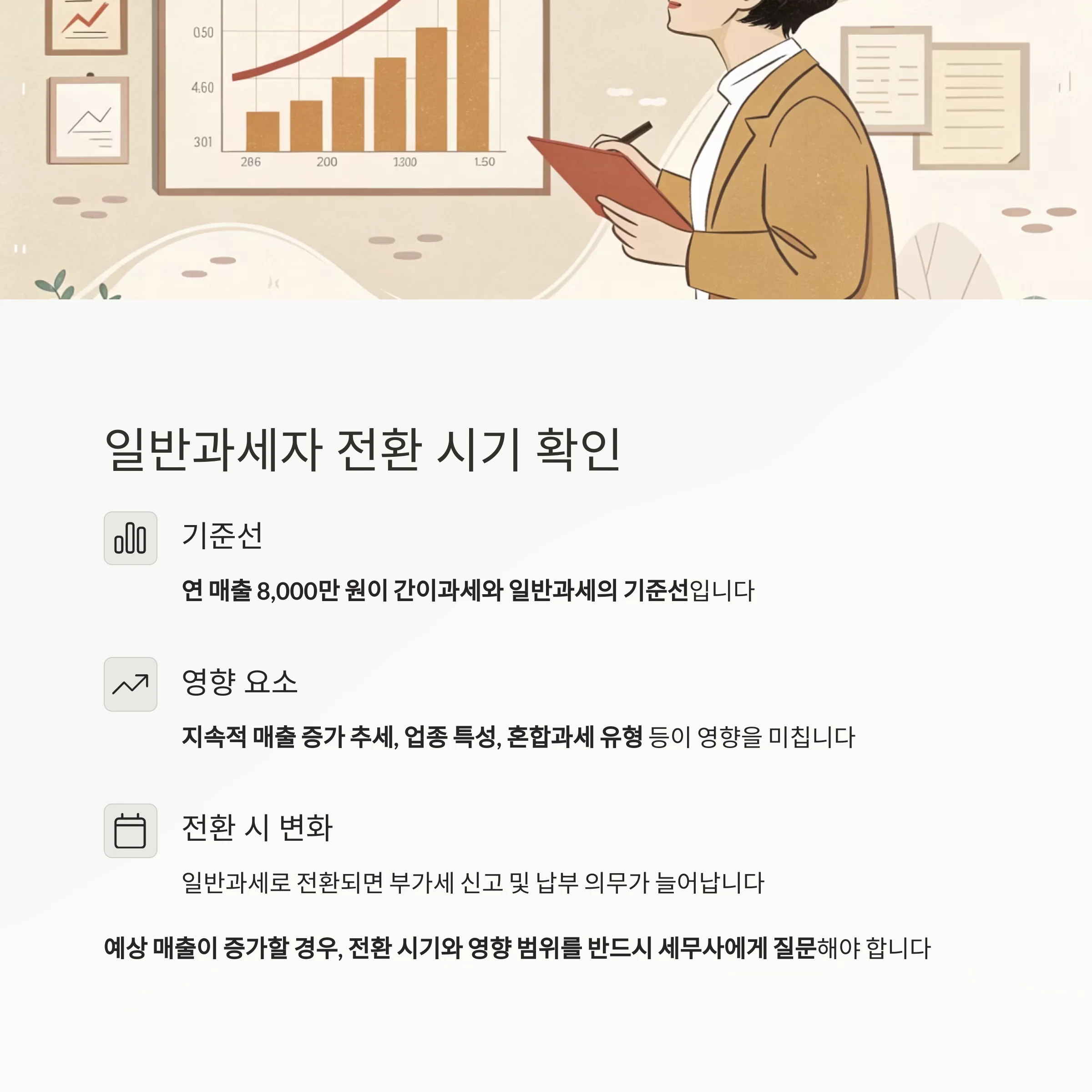 하지만 단순히 숫자만 기준이 되는 것이 아니라, 지속적 매출 증가 추세, 업종 특성, 혼합과세 유형 등이 영향을 미칩니다