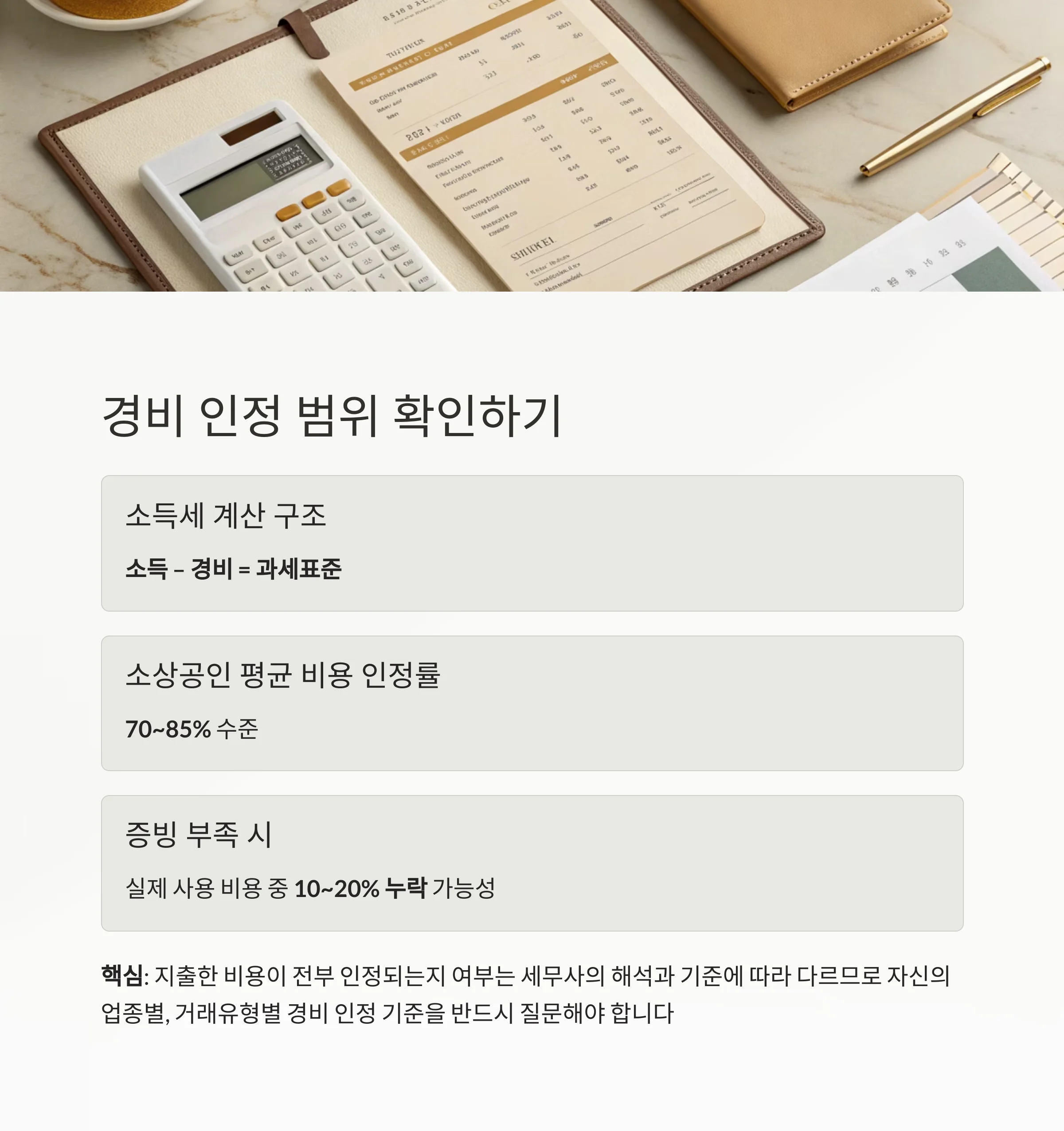 2024년 실무 기준에 따르면 소상공인 평균 비용 인정률은 70~85% 수준이며
