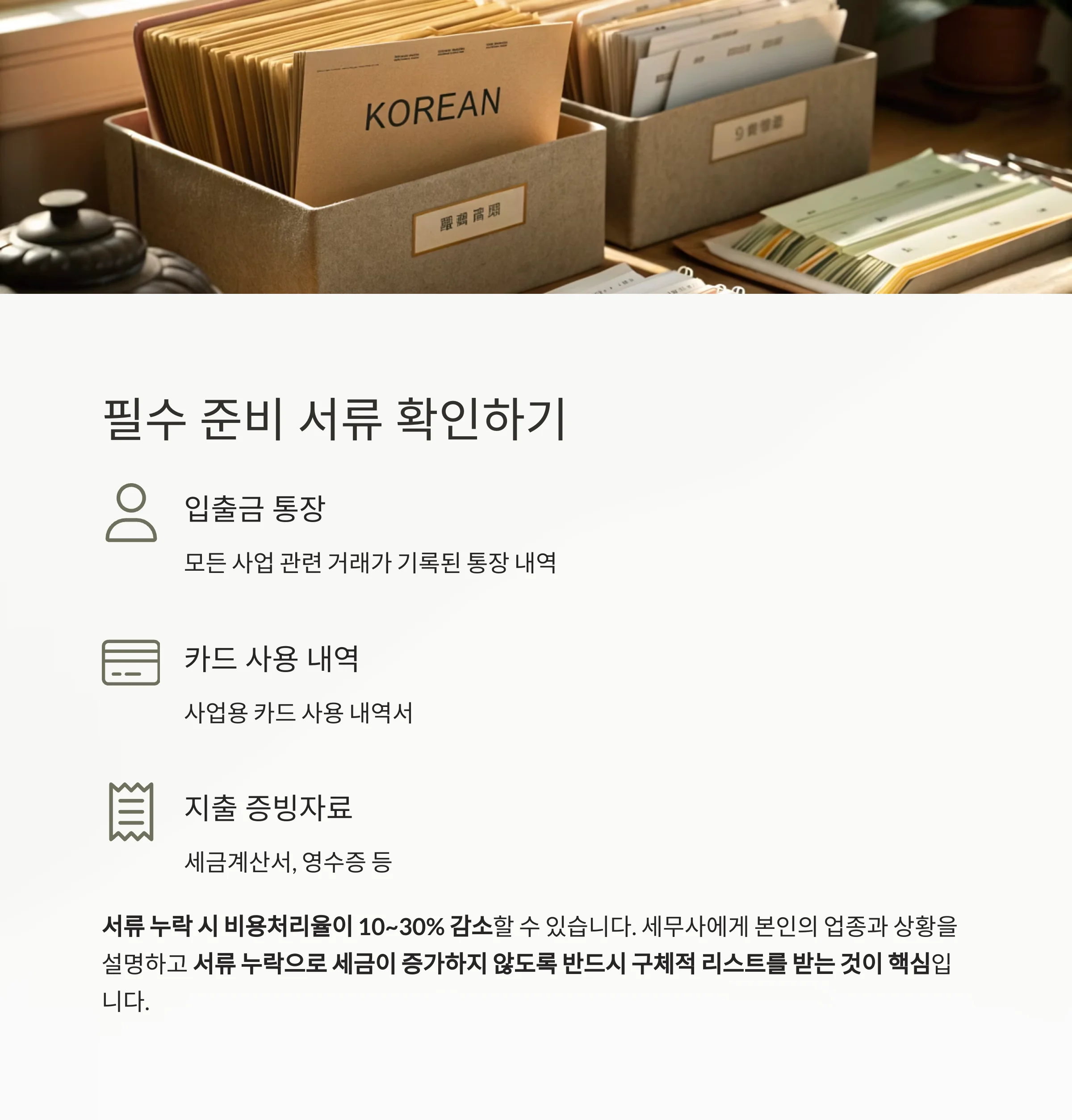 서류 누락으로 세금이 증가하지 않도록 반드시 구체적 리스트를 받는 것이 핵심입니다