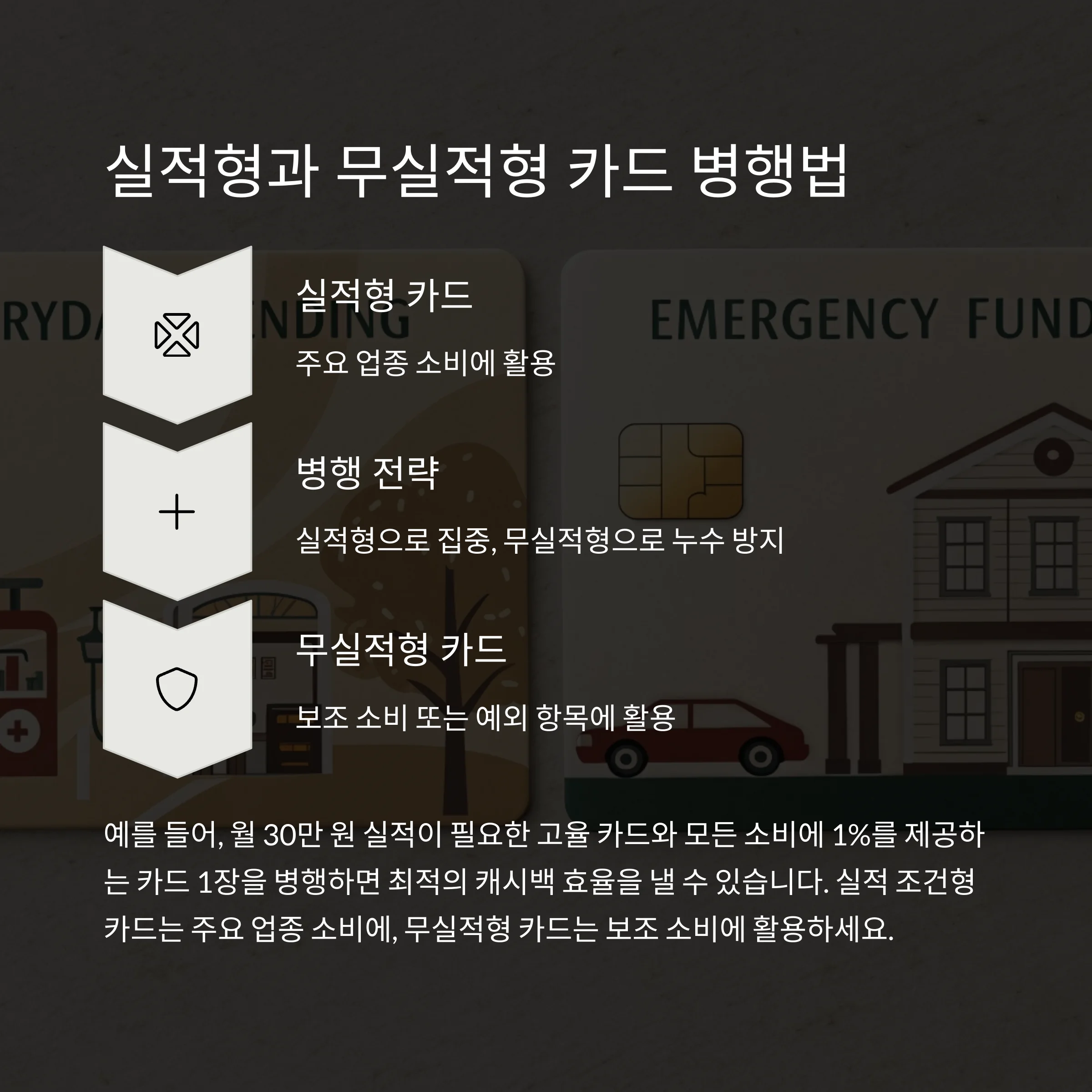 무실적형 카드는 보조 소비 또는 예외 항목에 활용합니다.