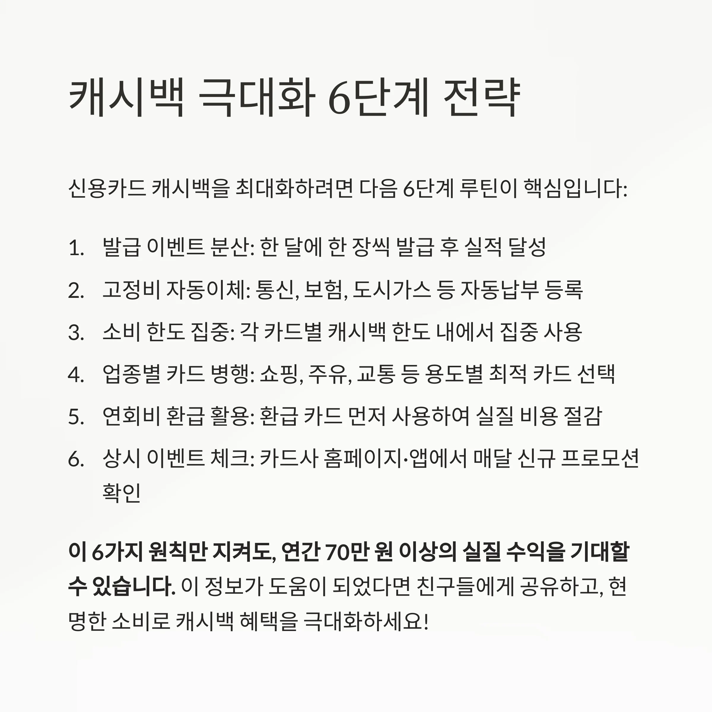 신용카드 캐시백을 최대화하려면 다음 6단계 루틴이 핵심입니다.