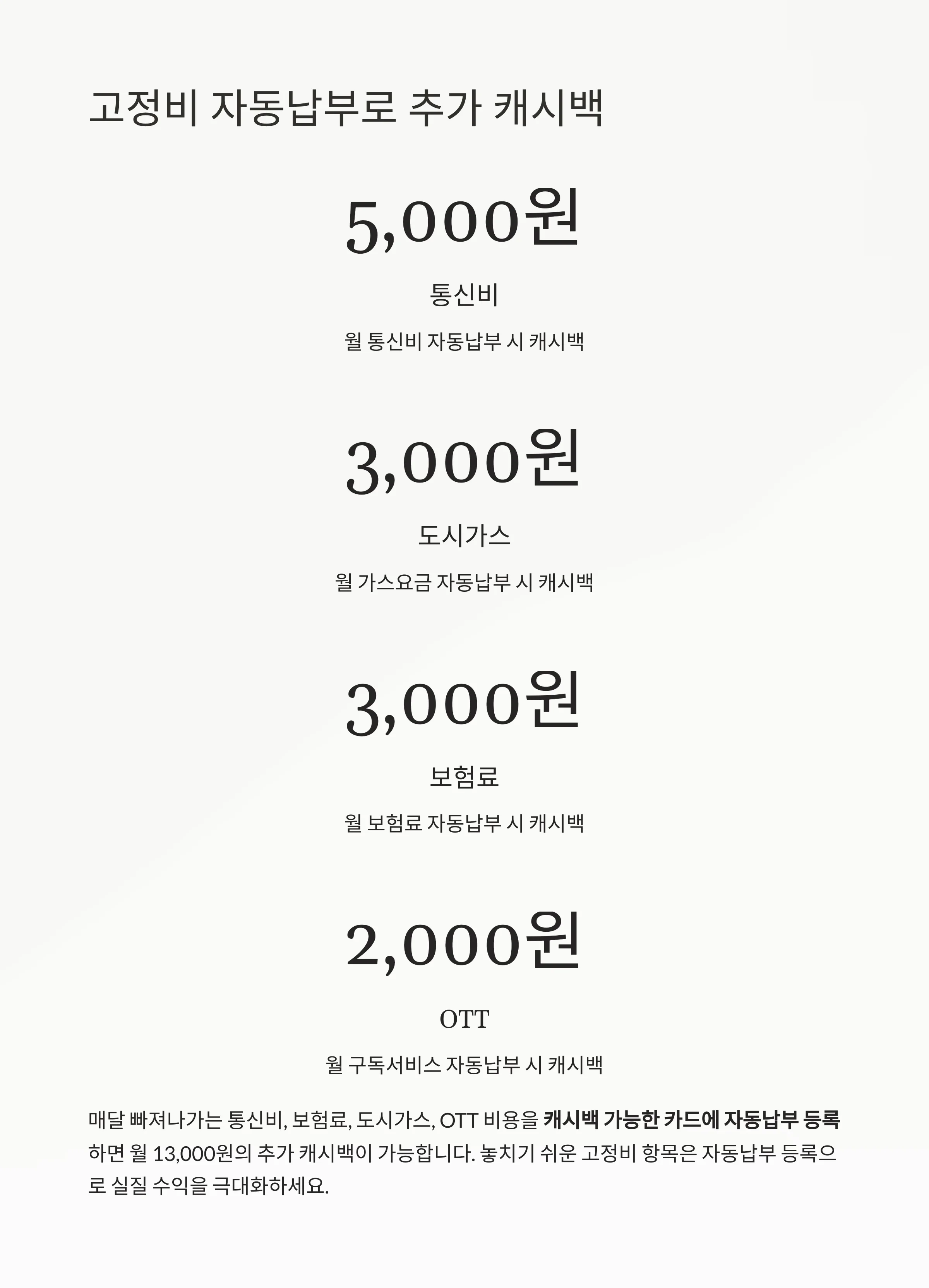 고정비 자동납부로 추가 캐시백 받기