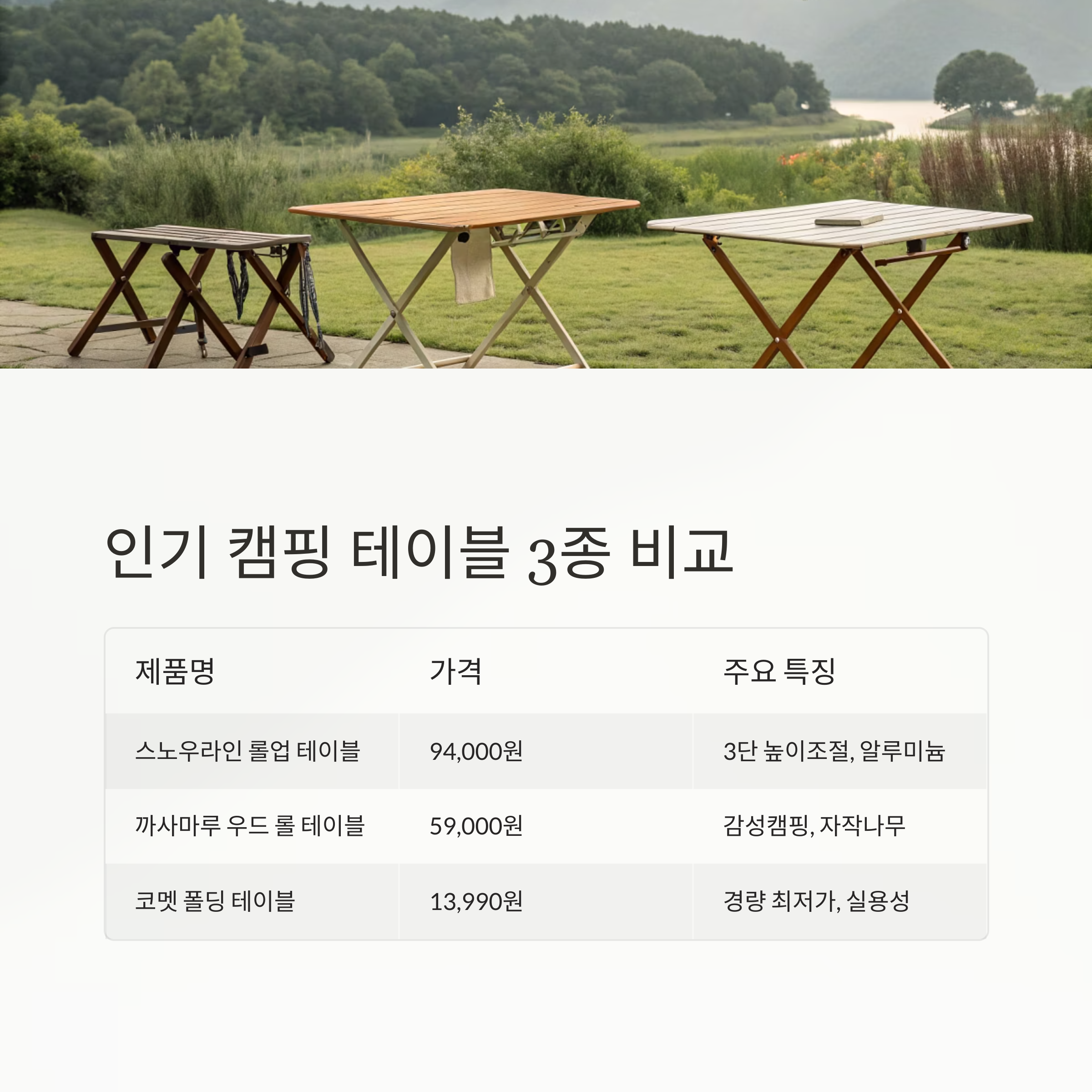 인기 캠핑 테이블 3종 비교