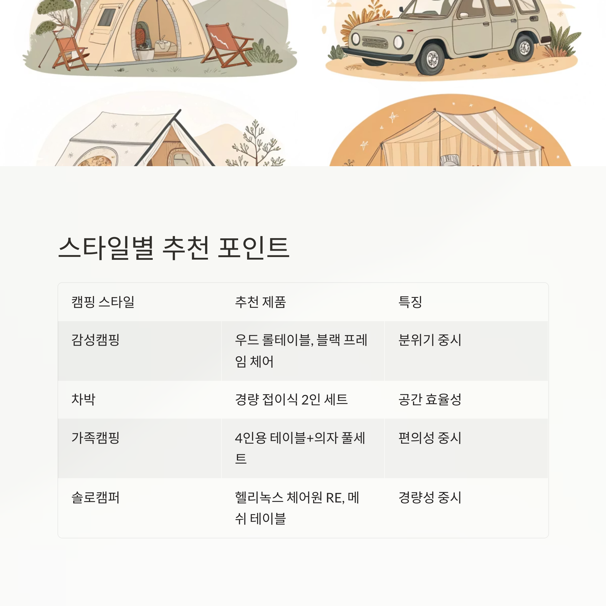 캠핑 스타일 추천 제품 특징