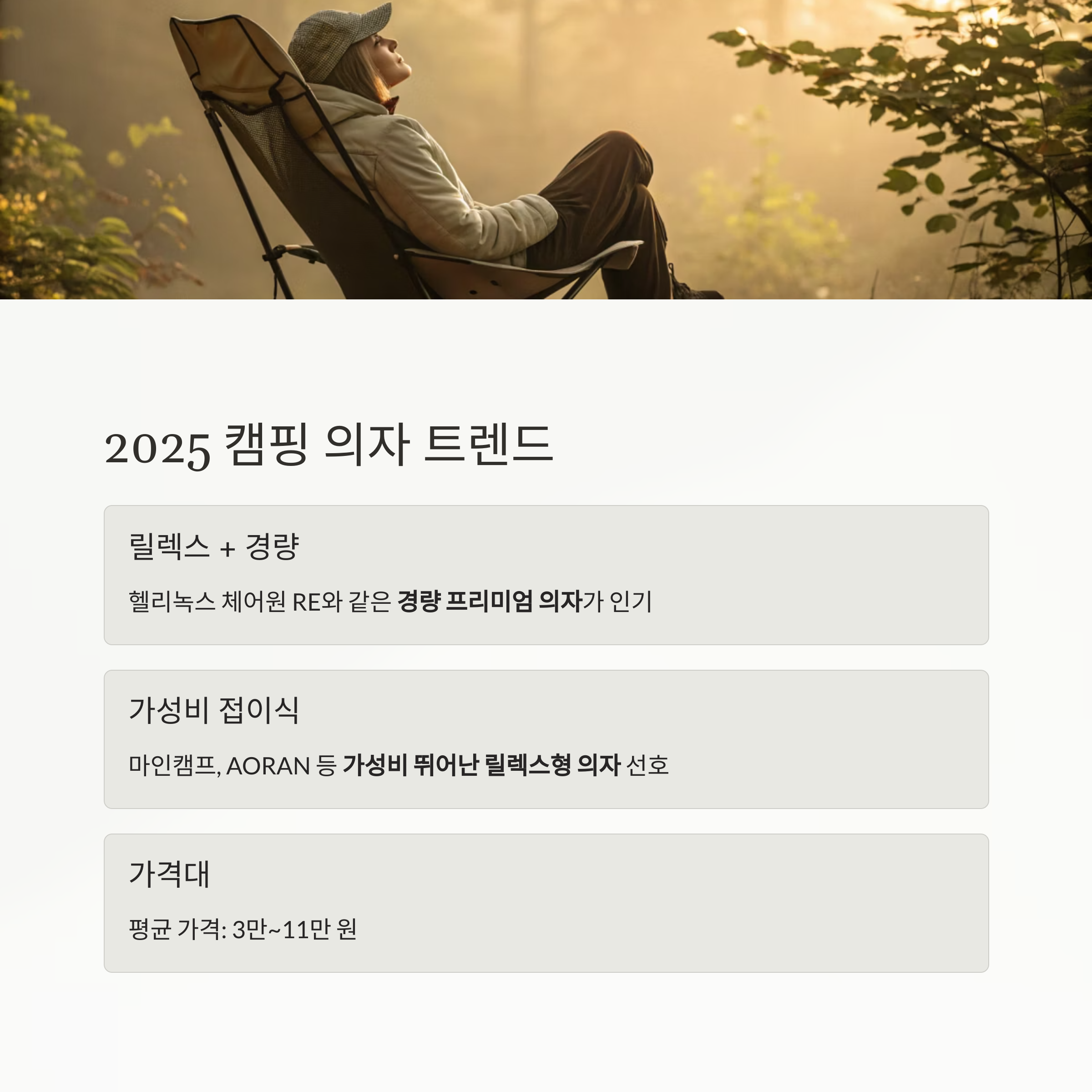 2025년 캠핑 의자, 트렌드의 핵심은 '릴렉스 + 경량'