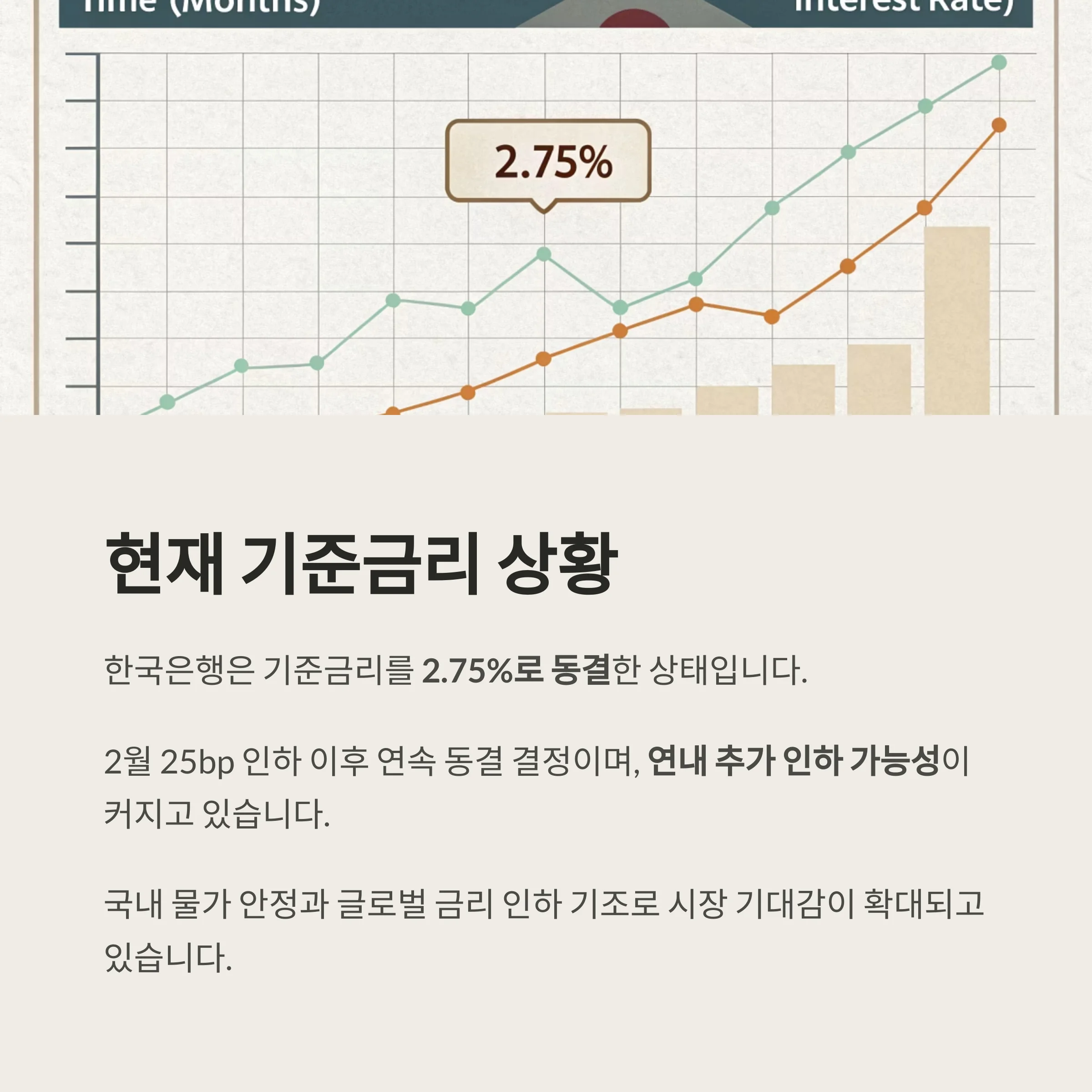 특히 2월 기준금리 인하 이후 3개월 연속 동결 기조를 유지하면서, 신중한 통화정책 기조를 보여주고 있습니다.