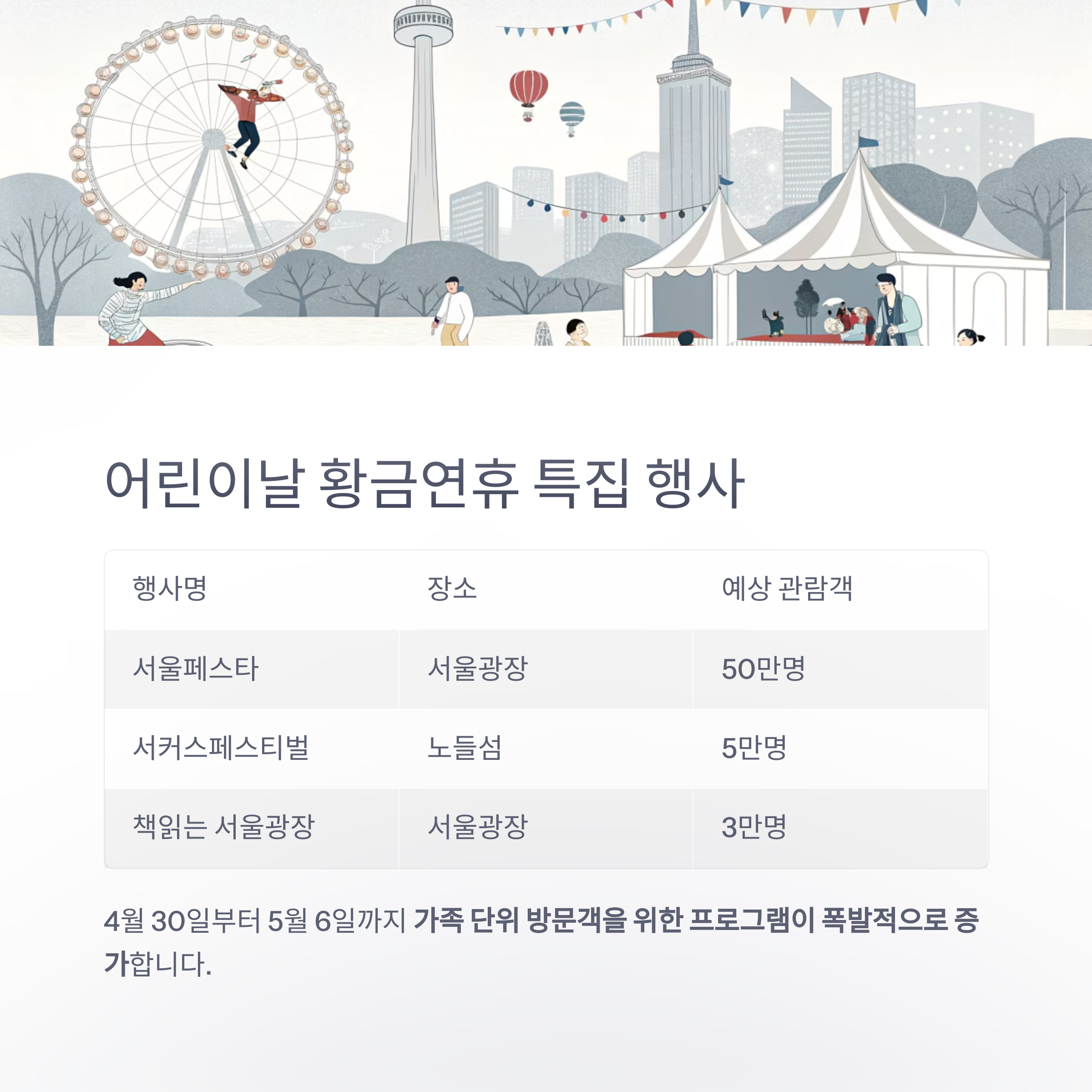 어린이날 황금연휴 집중 – 5월 첫 주 행사만 9건 이상