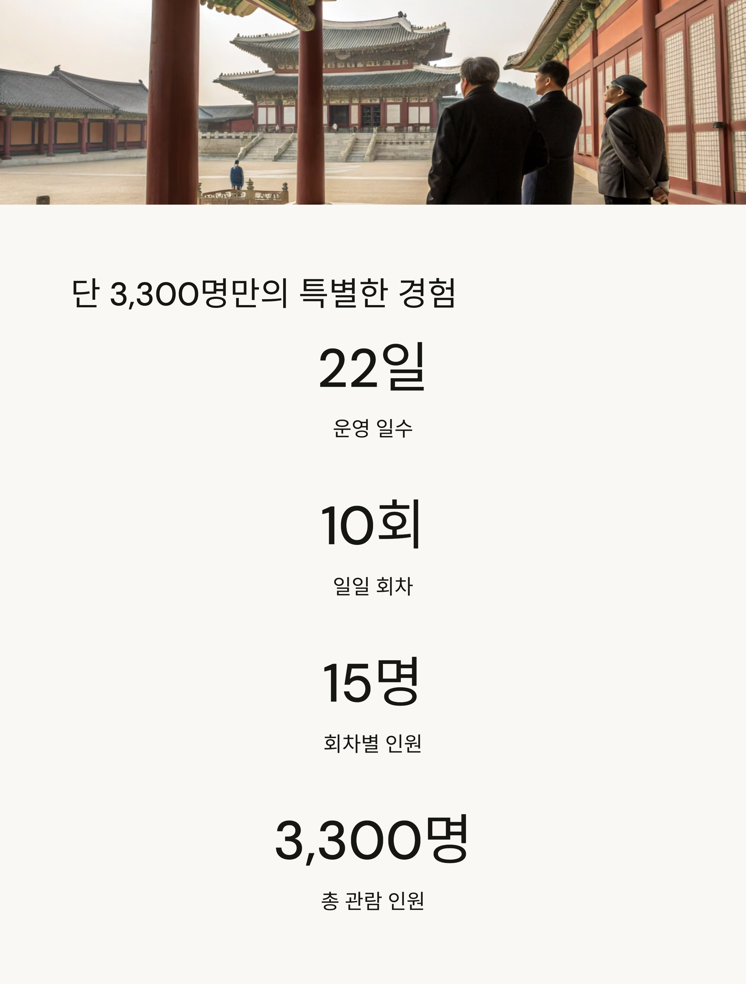총 관람 인원 3,300명 (22일 × 10회 × 15명)